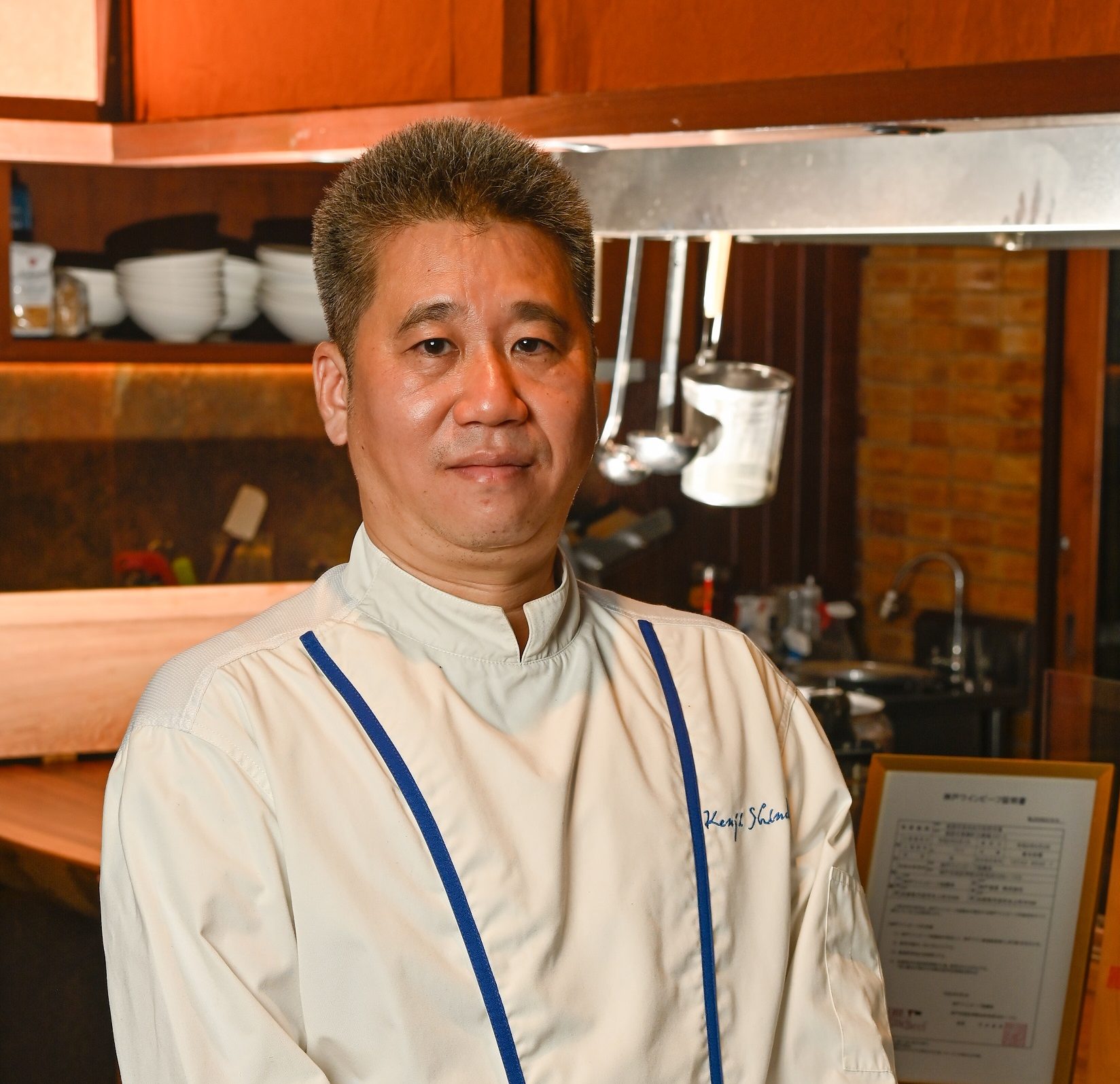 小学生の頃から家族の食事を作り始め、美味しいねとおだてられて嬉しく、将来は調理師になろうと心に決めていました。高校を出てすぐにでも調理師学校に入る気で いましたが、周囲に勧められ大学に進学。卒業後は「白木屋」を擁するモンテローザに入社しました。現場に出てみると調理に携わることはほとんどなく、また、調理技術も足りてないと痛感したのを覚えています。料理への想いが募り、回り道したけど、ホテルオークラ神戸の門を叩きました。全く未知のフレンチの世界でゼロからのスタート。知識や技術の幅が広がるのを実感し、充実の4年間を過ごしました。次に「ふらんす亭」チェーン本部のマネージャー職を務め、経営マニュアルほかフランチャイズの仕組みを学びました。その後、地元に戻って働こうと入った会社で「丸亀製麺」に配属されたことが、僕の運命を大きく変えたのです。やり始めると、粉、出汁、材料の選び方、一杯のうどんを作るのにこれほど労力がかけられているのかと驚いたし、その奥深さに探求心も刺激されて。何度も四国に足も運んだり、なぜ?どうして?と掘り下げる、飲食店の深い根幹の部分を勉強させてもらいました。地元で仕事したいと帰ったはずが、いつしか西日本を統括するマネージャーとして忙しく全国を歩き回る日々。社員教育や新店舗立ち上げの部署を任されるようになり、初の海外進出の現場にも立ち会うことに。それまで海外志向でもなかった僕だけど、これは行 くしかない、何でも体験してやろうとタイにやって来たのが、今から10年ほど前です。