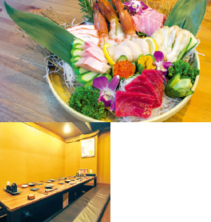 エカマイビッグC3階の大型店。日本から週2回仕入れる新鮮な魚が自慢。4名以上で飲み放題も(生ビール&ソフトドリンクが270B~。時間制限なし)庵寺