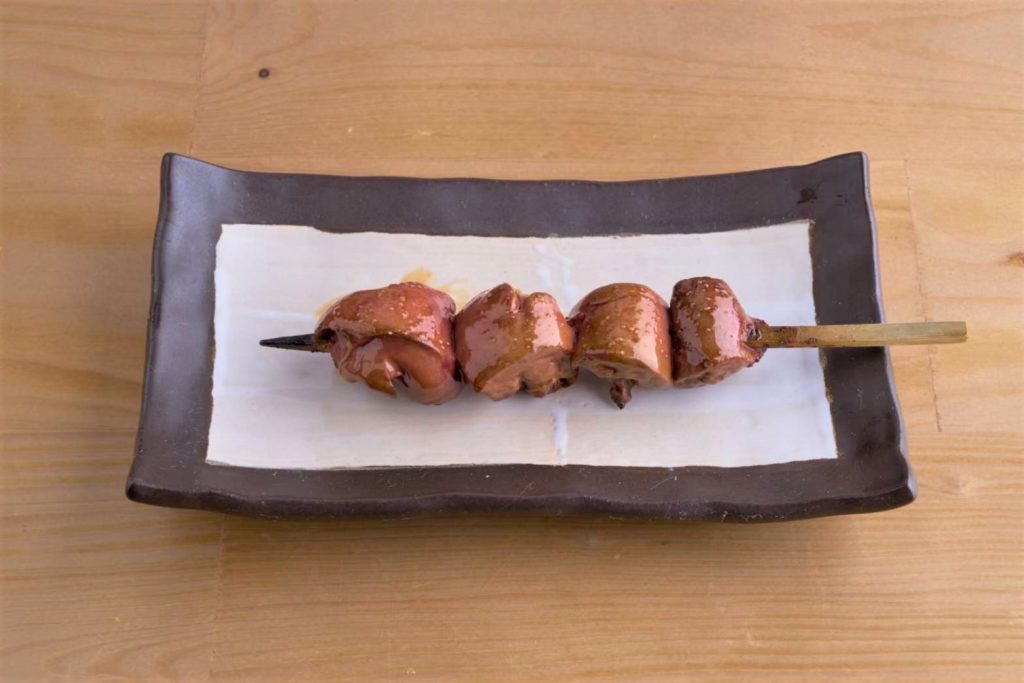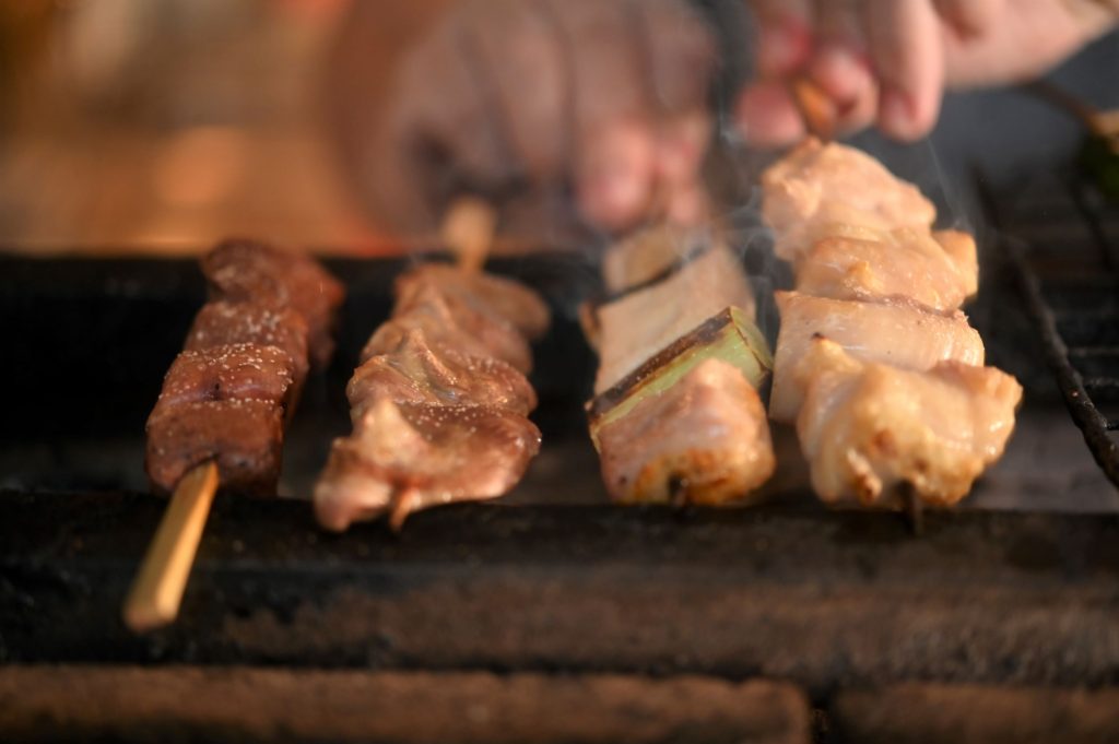 名物は何といっても、炭火の香りをまとった串の数々。厳選した朝挽きの鶏を使った焼鳥、豚や牛、野菜など、素材ごとに焼き加減を変えながら、もっともおいしい状態で提供してくれる。一本40Bからと種類も豊富に、椎茸の肉詰め「たぬき」(65B)のようなちょっと珍しいものも。噛むほどに旨みあふれるつくね、ジューシーなささみ、ここまでくさみのないレバーは他では味わえないとレバーのリピーターも多し。パリパリの手羽先にたっぷり明太子が嬉しい「手羽明太子」(70B)も忘れずにオーダーしておきたい。熱々にかぶりつき、すかさずビールとともに流し込む瞬間は格別!のひと言だ。