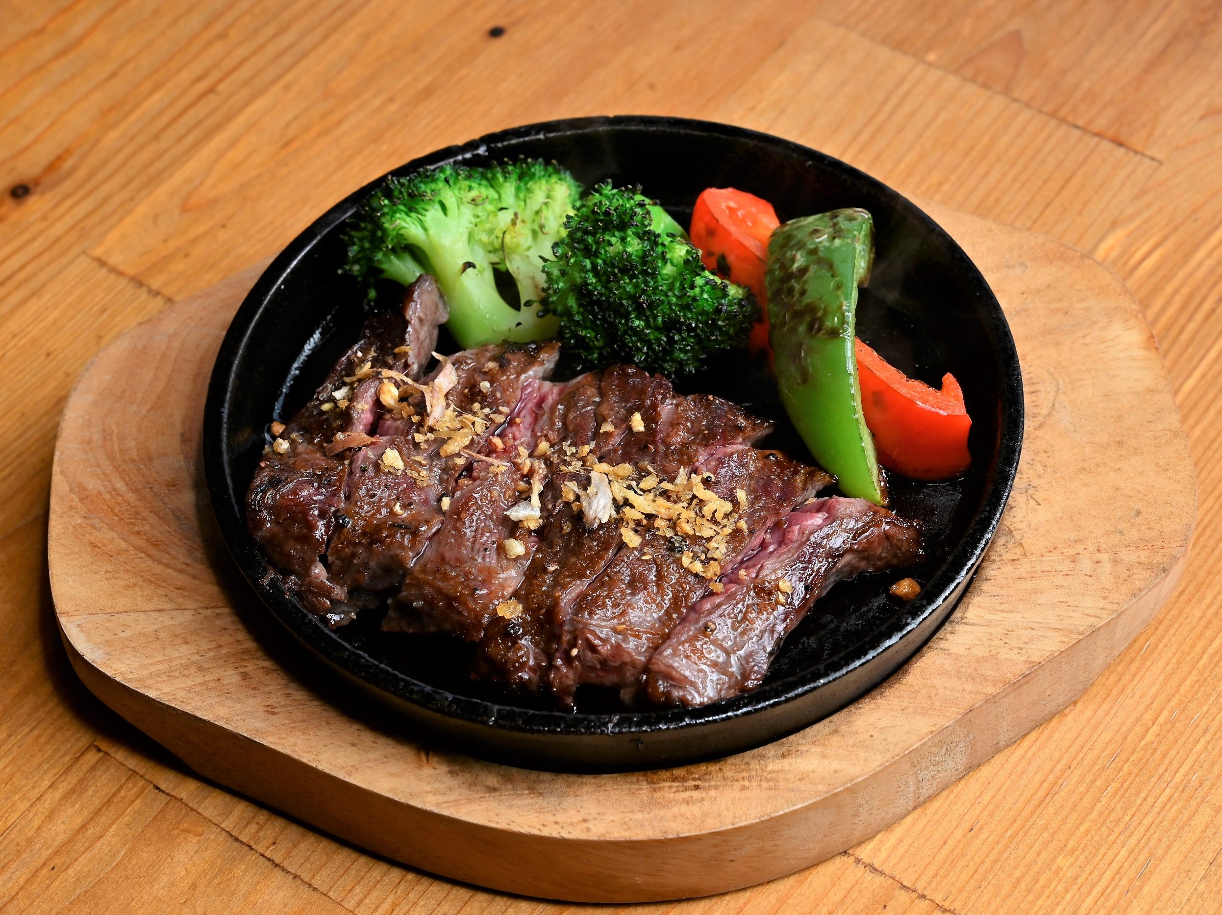 和の味に留まることなく、さっくり軽い衣の「プリプリえびマヨ」(199B)、玉ねぎソースがよく合う「牛ハラミステーキ」(399B)など、気の利いた一品もアラカルトに並ぶ。前菜や、ちょっとした箸休めなら「赤味噌のバーニャカウダ」(210B)を頼みたい。コクのある赤味噌にアンチョビとバターが香るバーニャカウダソースは野菜に付けてよし、そのままつまみにしてよし、奥深くやみつきになる味わいだ。