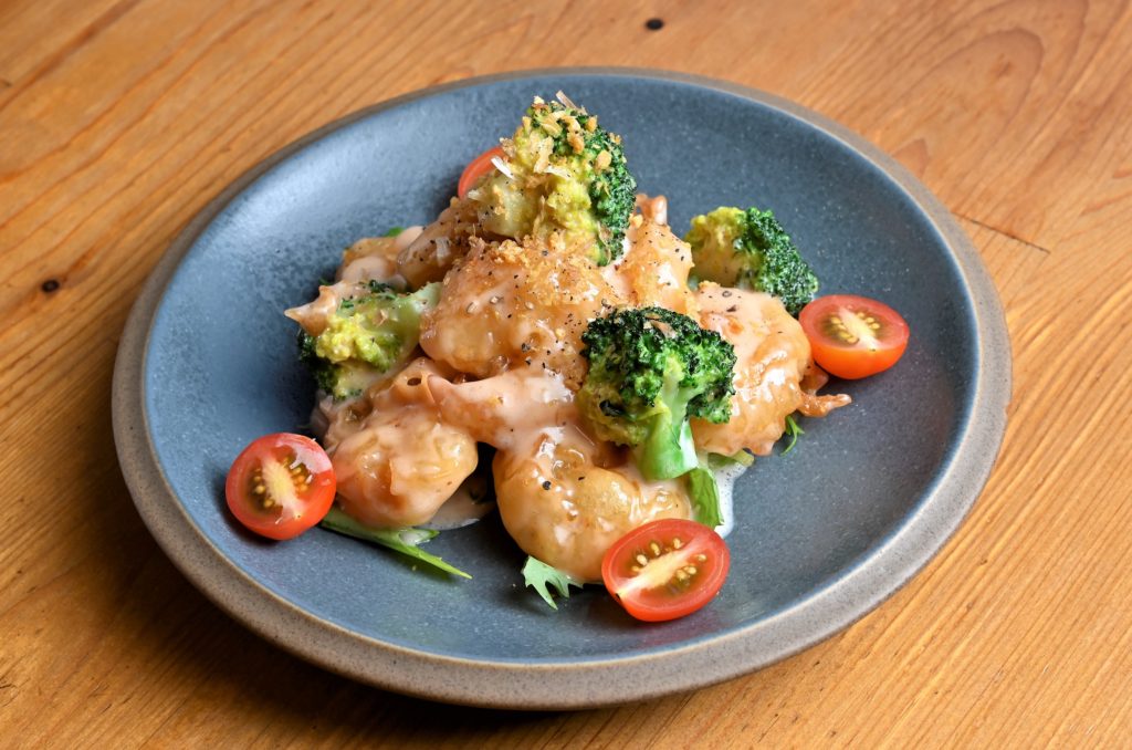 プラカノン駅から少し離れた、静かなソイPridi14にたたずむ「Abiys Kitchen」は、焼鳥とお酒をじっくり楽しめる大人の隠れ家。「自分が食べたいものしか作らない」という店主の阿部さんの手から生み出される料理は、秋田名物いぶりがっこを薄くかつら剥きにし、内側にチーズをくるりと巻いた「いぶりがっこクリームチーズ」(139B)、塩辛ソースの旨みでポテトがぐんと美味しくなる「塩辛ポテトフライ」(189B)、毎日丁寧に仕込む「手作り豆腐」(140B)など、アイディアとひと手間を感じる、酒飲みのツボをついたものばかり。