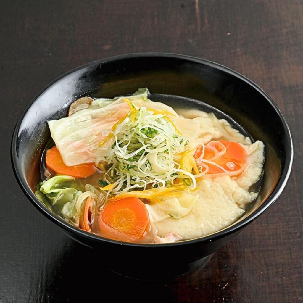 「すいとんは秩父の家庭の定番食。根菜やキノコをたっぷり入れて大鍋で作るんですよ」と秩父出身の店員浅見さん。旨み満載のスープもさることながら、それを吸ったモッチリ食感のすいとんがすこぶる美味。体も心も温まる一杯だ。暑い夏を乗り切る知恵が詰まった「冷や汁」もぜひ注文したい。ごま味噌ベースに、みょうが、きゅうり等の薬味をキリリと効かせているのが秩父流。そうめんを入れていただくかご飯かを選べる。締めの一杯にもさっぱりでいい。
