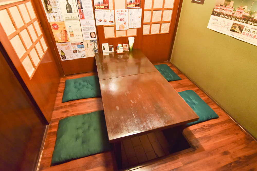 一人客もふらりと立ち寄るカウンター席のほか、畳敷きに座布団、砂壁とどこか実家にも似た座敷席、掘ごたつ席、大人数でもゆったり集える大広間も完備。どこでも腰を下ろした瞬間「日本に帰って来た」と懐かしさがこみ上げてくるはず。