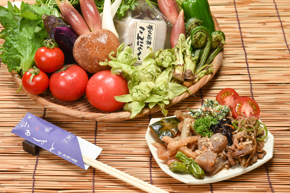 しみじみと日本情緒にあふれ、親しみやすい雰囲気の居酒屋「ふるさと」。埼玉県秩父地方の郷土料理を中心に、刺身、寿司、鍋、季節の一品と名物を数えたらキリはないが、やはり一番人気は地元秩父より届く山菜を使った料理に尽きる。