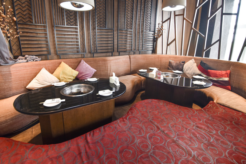 日本の店舗同様、牛角カルビ(270B)、ネギ牛タン塩(190B)、親分!ハラミ(280B)、ドラゴンカルビ(240B)などの定番アラカルトメニューのほか、鹿児島産和牛の人気部位を盛り合わせた牛角人気盛りといったブランド和牛まで取り揃え、焼肉奉行たちを唸らせている。
