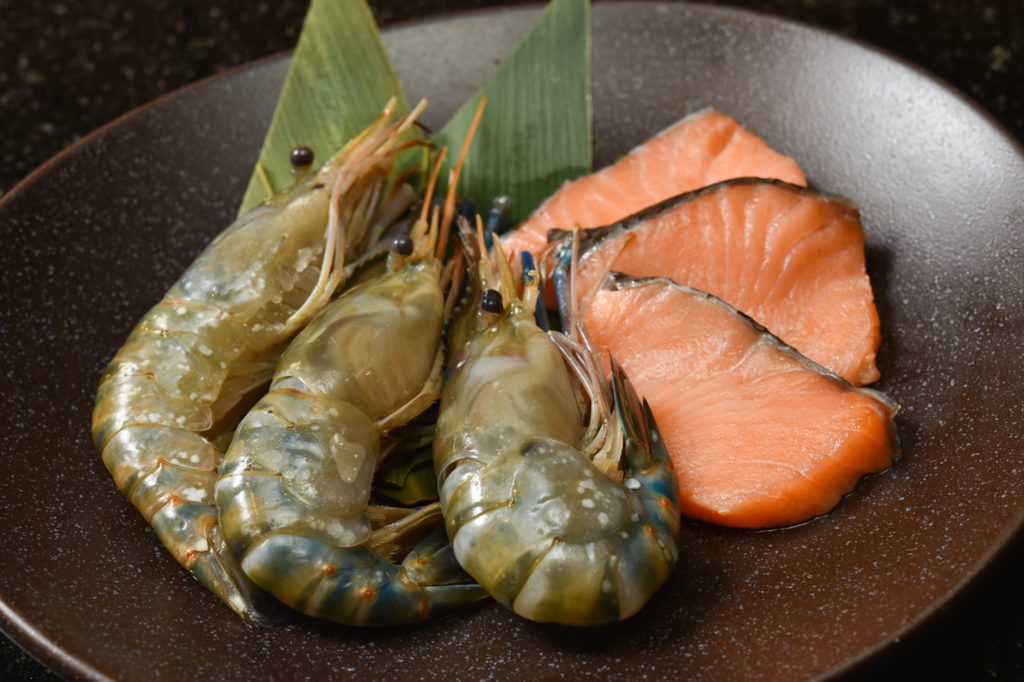 399Bのコースは豚と鶏が中心、499Bのコースは豚と鶏に加え、牛、海老、サーモンなどシーフードがプラス。