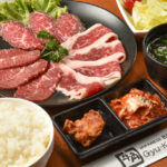 おすすめは牛バラ、ハラミ、ロースがセットになった牛肉3点セット(280B)。また、お肉以外の気分の時は、冷麺定食(180B)がイチオシ。
