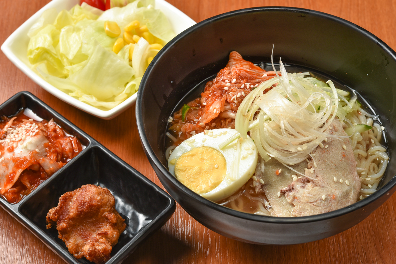 つるりとした喉越しにこだわった盛岡冷麺のさっぱりとした味わいは年中暑いタイにぴったり。