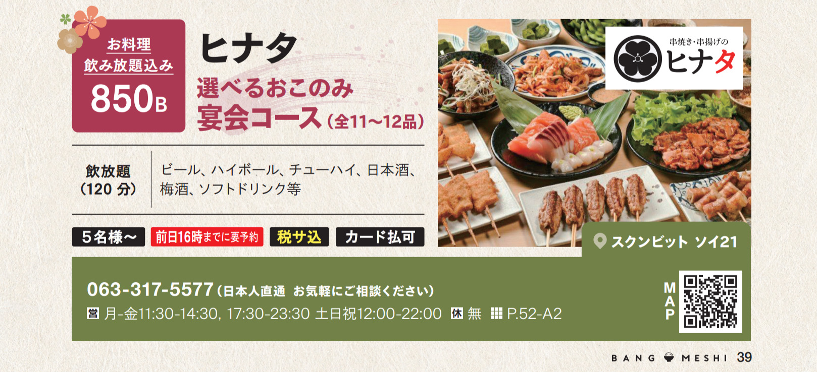 ビール、ハイボール、チューハイ、日本酒、梅酒、ソフトドリンク等最低人数 |5名様より カード払 |可 予約 |前日16時までに要予約 消費税 |込 サービス料|込