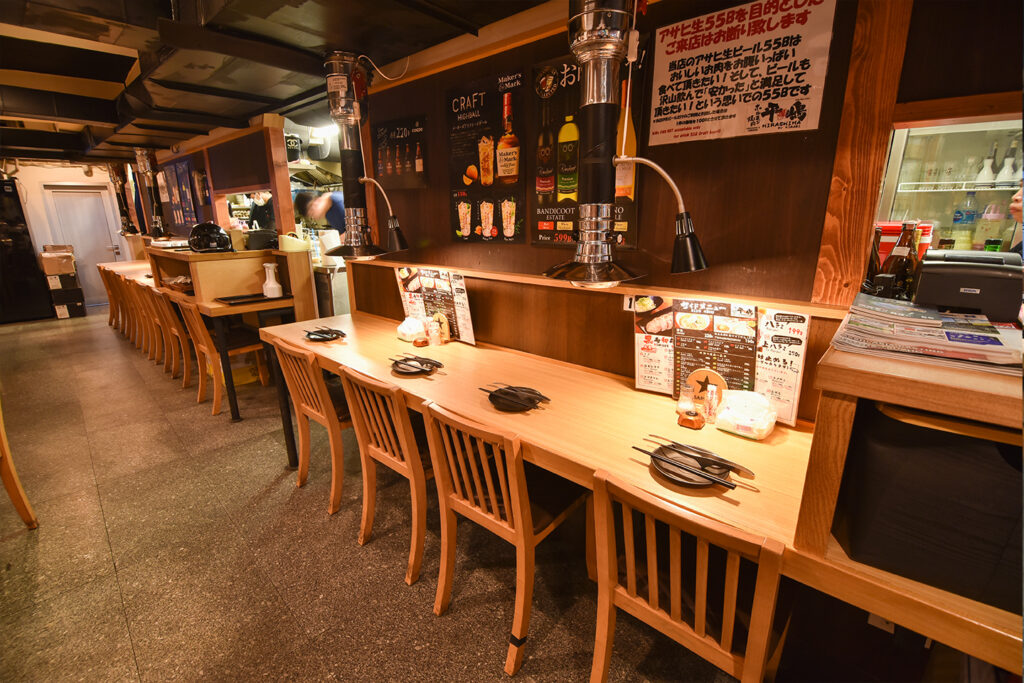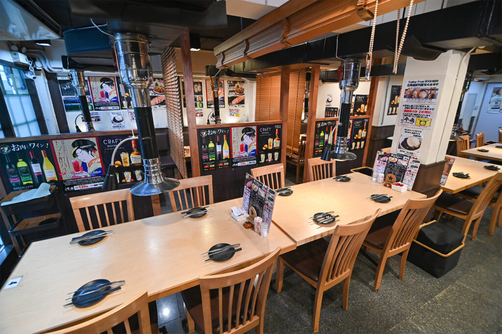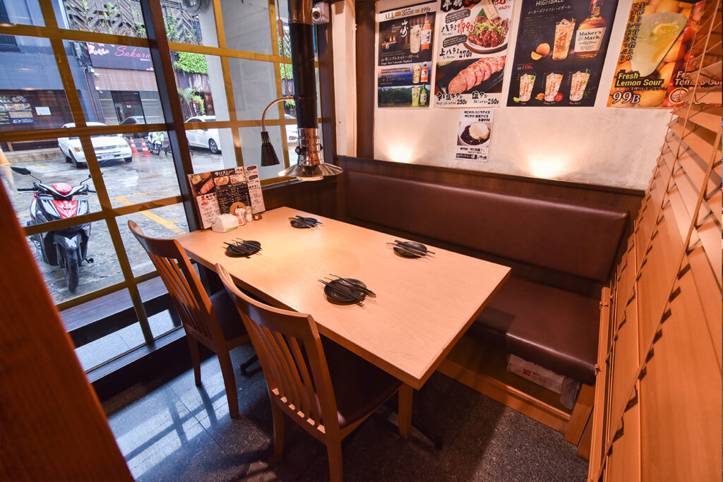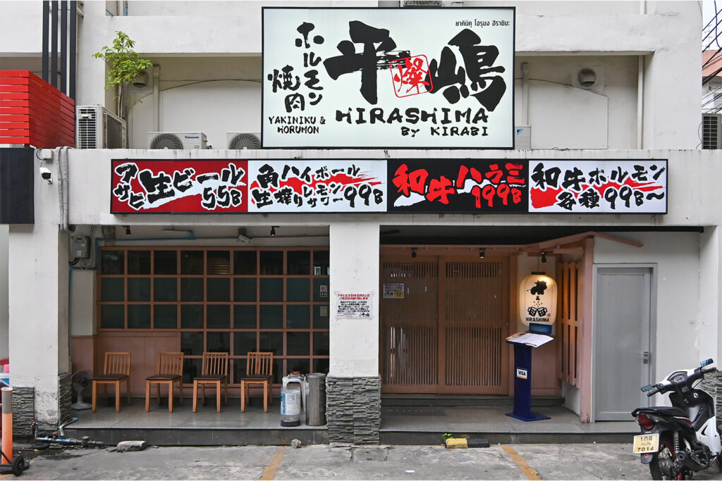 日本国産牛ホルモンを七輪で。人気のハラミはお値打ち品から和牛特選まで5種類。ハチノス、ウルテなど希少部位もあり、ホルモンの種類はバンコク屈指。馬肉、おつまみなども豊富。