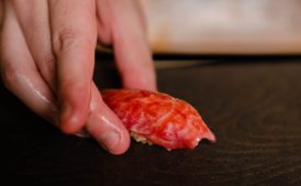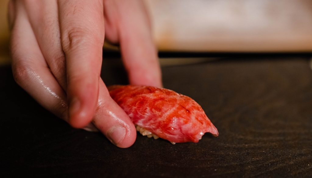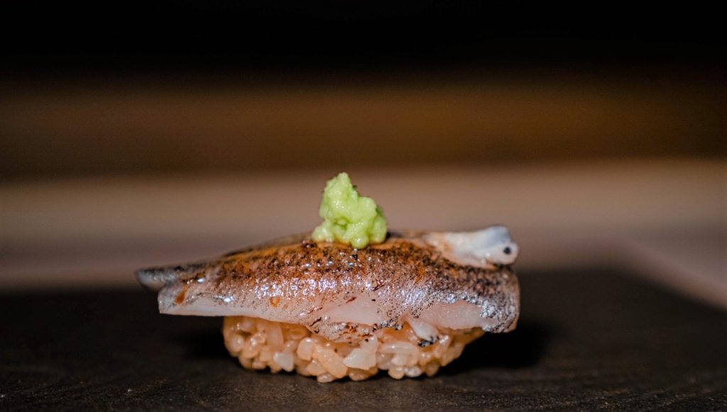 同店の特徴は、酢や昆布で締める、寝かせる、漬ける、炙るなど、ひと仕事で魚介の旨みを最大限に引き出す伝統の江戸前寿司。つけ場に立つのは、フランスで人気寿司店を切り盛りしていた職人歴20年以上のひろさんで、日本語はもちろん、英語、フランス語、韓国語、タイ語など多言語対応なのも頼もしい。