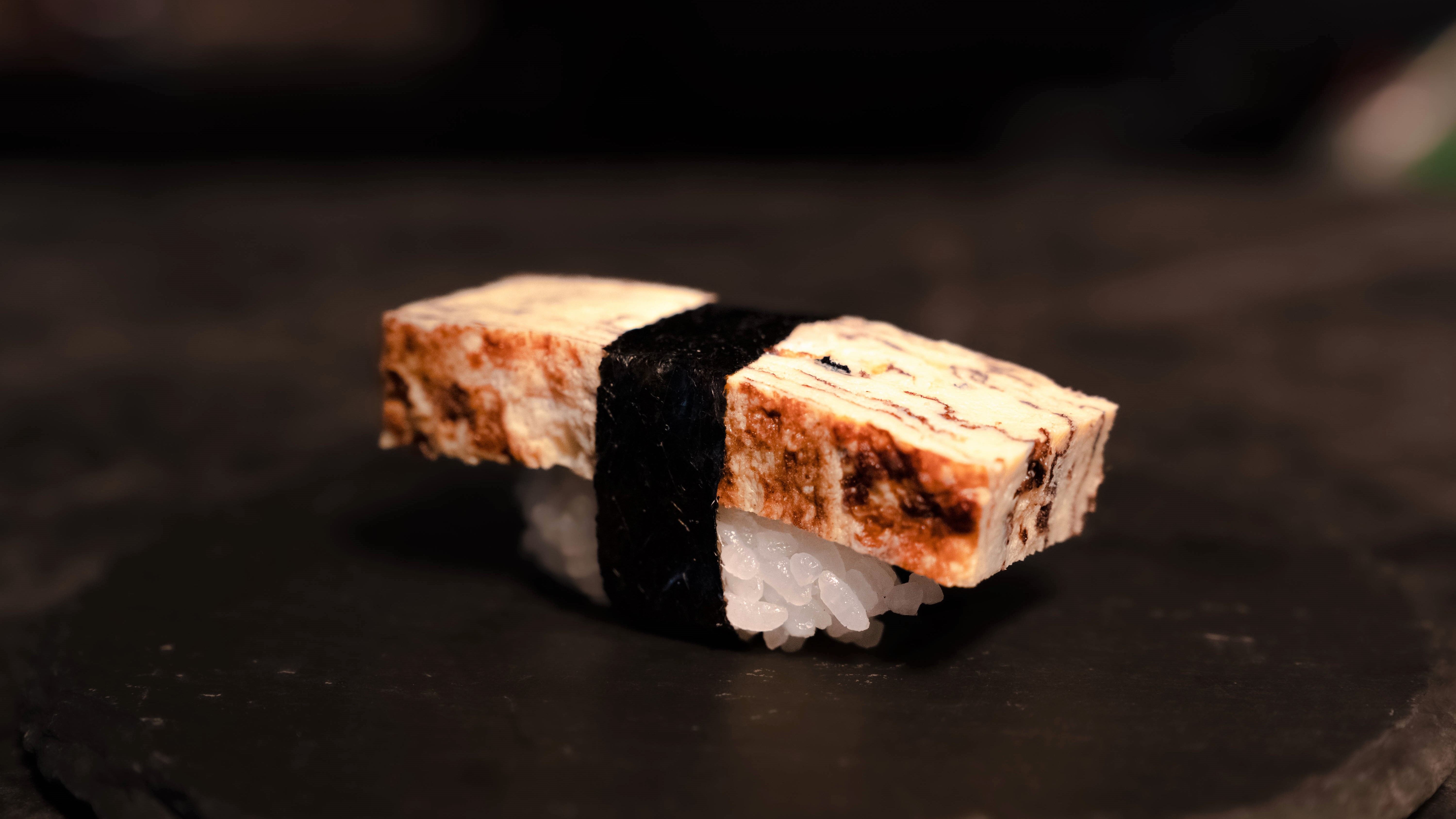 季節によって異なるが、取材時のラインナップは、白身、いか、漬け、海老、はまち、中トロ、サーモン、しめ鯖、玉子で、ほんのり固めに炊いたシャリがそれぞれのネタを大いに引き立てる。供された時の美しさ、繊細な手仕事を施したネタ、ほろりと口の中でほどける食感とそのどれもが素晴らしく、江戸の真髄がつまった一貫一貫に思わずため息。9貫だけでもお腹いっぱい満足できるが、お好みの握りをアラカルトで追加してもOK。一貫100Bからと安心価格なので、フトコロを気にせずオーダーしてみたい。