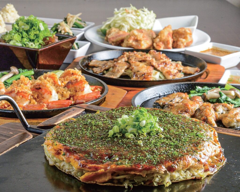 ・つき出し3種 ・ポパイベーコン ・海老ニンニク焼 ・広島産かき鉄板焼 ・牛バラ焼 ・鶏唐揚げ ・ネギ焼 ・お好み焼(肉玉そば) ※コース内容は予算に応じて相談OK