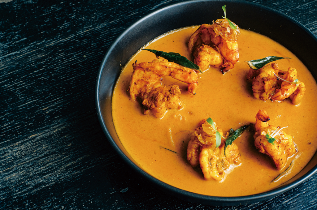 テラスから素敵なガーデンが見渡せるミシュランレストラン。お勧めは、全メニュー食べ放題の週末ブランチ。基本はオーダー形式だが、自由に取ることができるウェルカムバイトのコーナーもある。オーダーメニューからは、パンジャブ地方の「ブロッコリーのタンドリー」がお勧め。砕いたカシューナッツとクリームチーズでマリネし、カルダモンパウダーで味付けされたブロッコリーがタンドール窯で焼き上げられている。非菜食メニューの「ケバブ- e -マライ」は、マリネードされたチキンが感動するほど柔らかい。メインは、海老やココナッツ、マンゴスチンで煮込まれたケララ地方の「マラバール・ブラウン・カレー」はいかが? どれも高品質で味わい深く全て試したくなる。