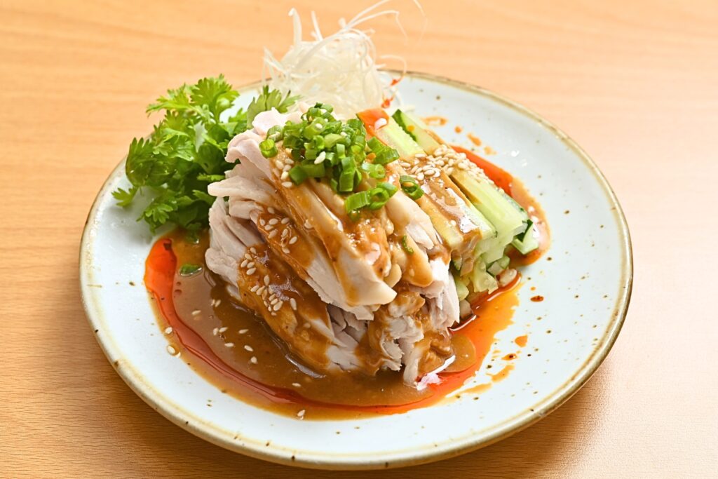 ・地鶏のレバー刺身 ・ササミのなめろう ・自家製レバーパテ ・ミニペーパーチキン ・本日のサラダ ・低温調理蒸し鶏の棒棒鶏 ・鶏チリソース煮込み ・焼鳥 レアササミ ・焼鳥 棒つくね ・もも肉の炭火焼き ・鶏鍋 又は もつ鍋 ・〆の雑炊 又は 中華麺