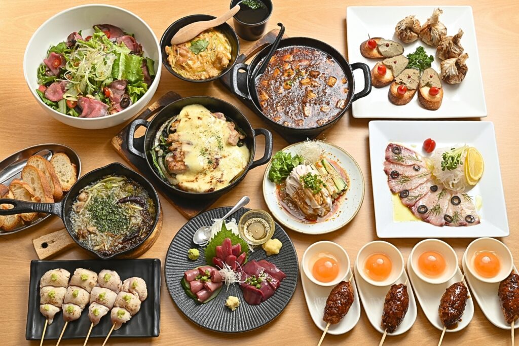 ・地鶏の刺身盛り合わせ ・自家製レバーパテ ・ミニペーパーチキン ・鰤のカルパッチョ ・和牛ローストビーフのサラダ ・シラスのアヒージョ ・焼鳥 レアササミ ・焼鳥 ふくらはぎ ・焼鳥 棒つくね ・骨付きもも肉のロースト ・地鶏の麻婆豆腐 ・選べる〆(ミニミニ親子丼、各種ミニラーメン、ミニパスタなどからそれぞれお好きな〆をお選びください)