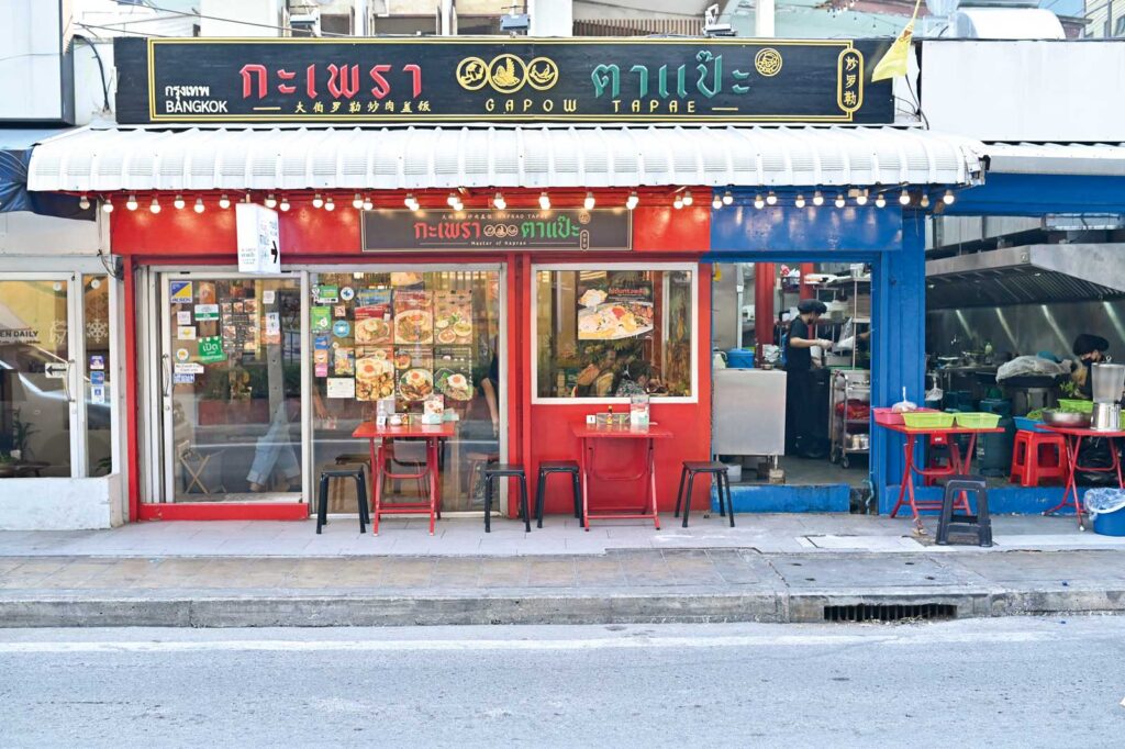 ガパオ・ターペの基本情報 店舗名ガパオ・ターペ カテゴリタイ料理 地域アソーク地区 お一人様予算 THB 〜 住所アソーク通りソイ1、プラ サーンミットプラザ向い 電話番号065-396-5291 営業時間9:30-20:30 (L.O.20:00) 定休日なし クレジットカードなし 座席数 個室情報 税金 サービス料 お通し代 ウェブサイト 地図