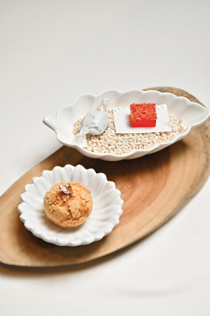 ●キャラメルトフィー:ナンプラーを加えた斬新なトフィー。仕上げのココナッツパウダーもくどくなく、さらりと口に溶ける。