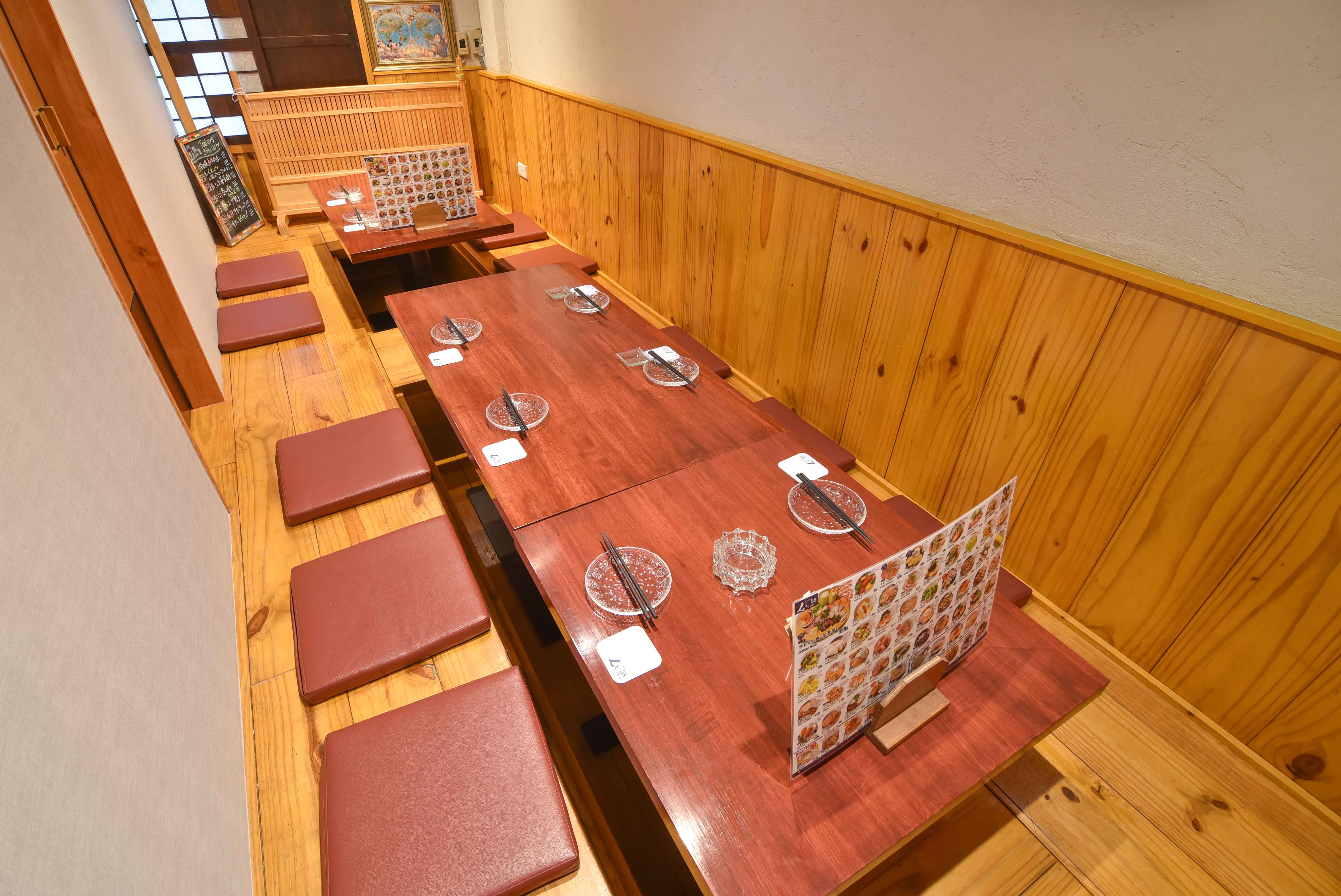 4階は最大30名の宴会にも対応可。掘ごたつ席は子ども連れにも最適。
