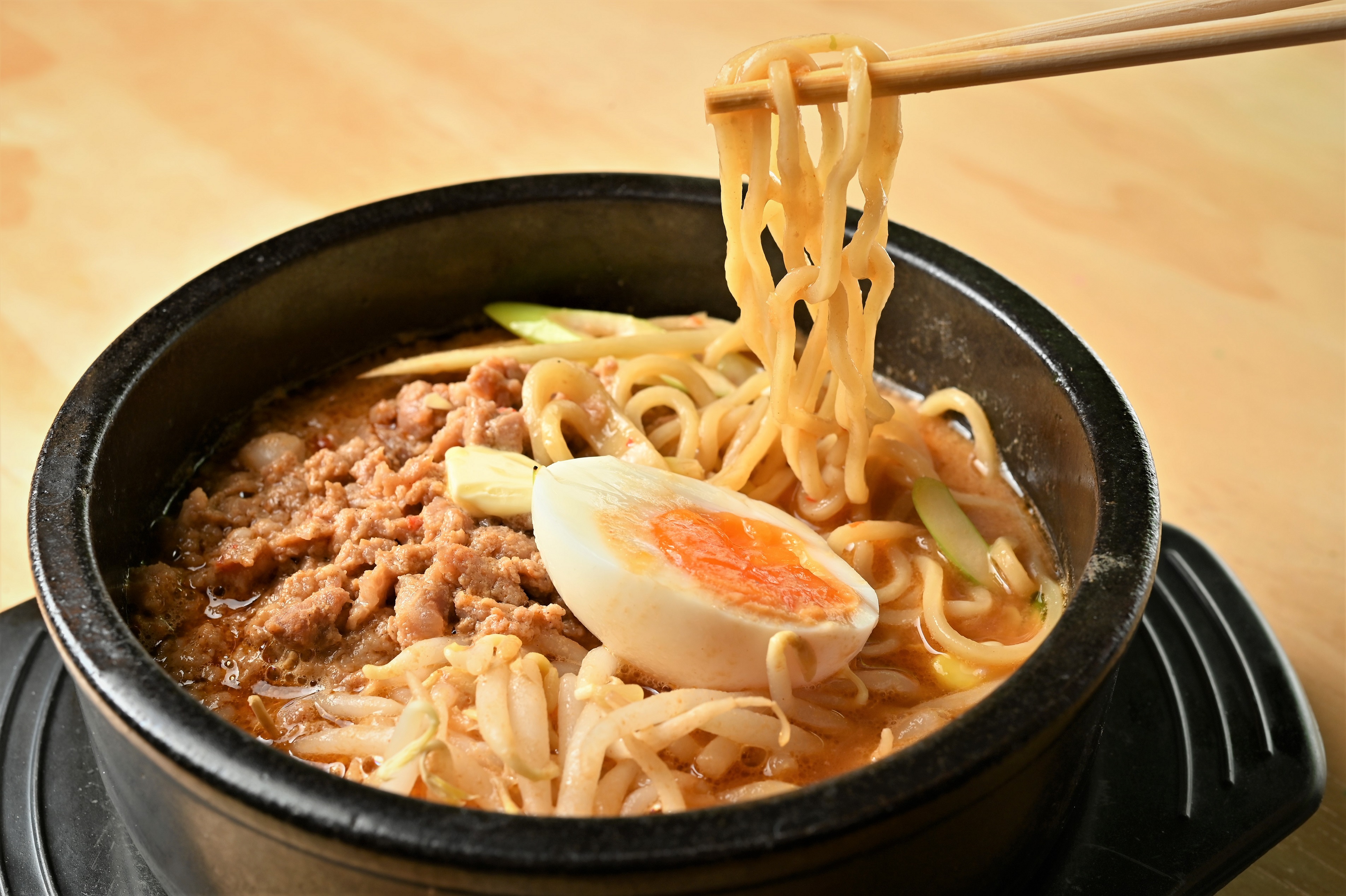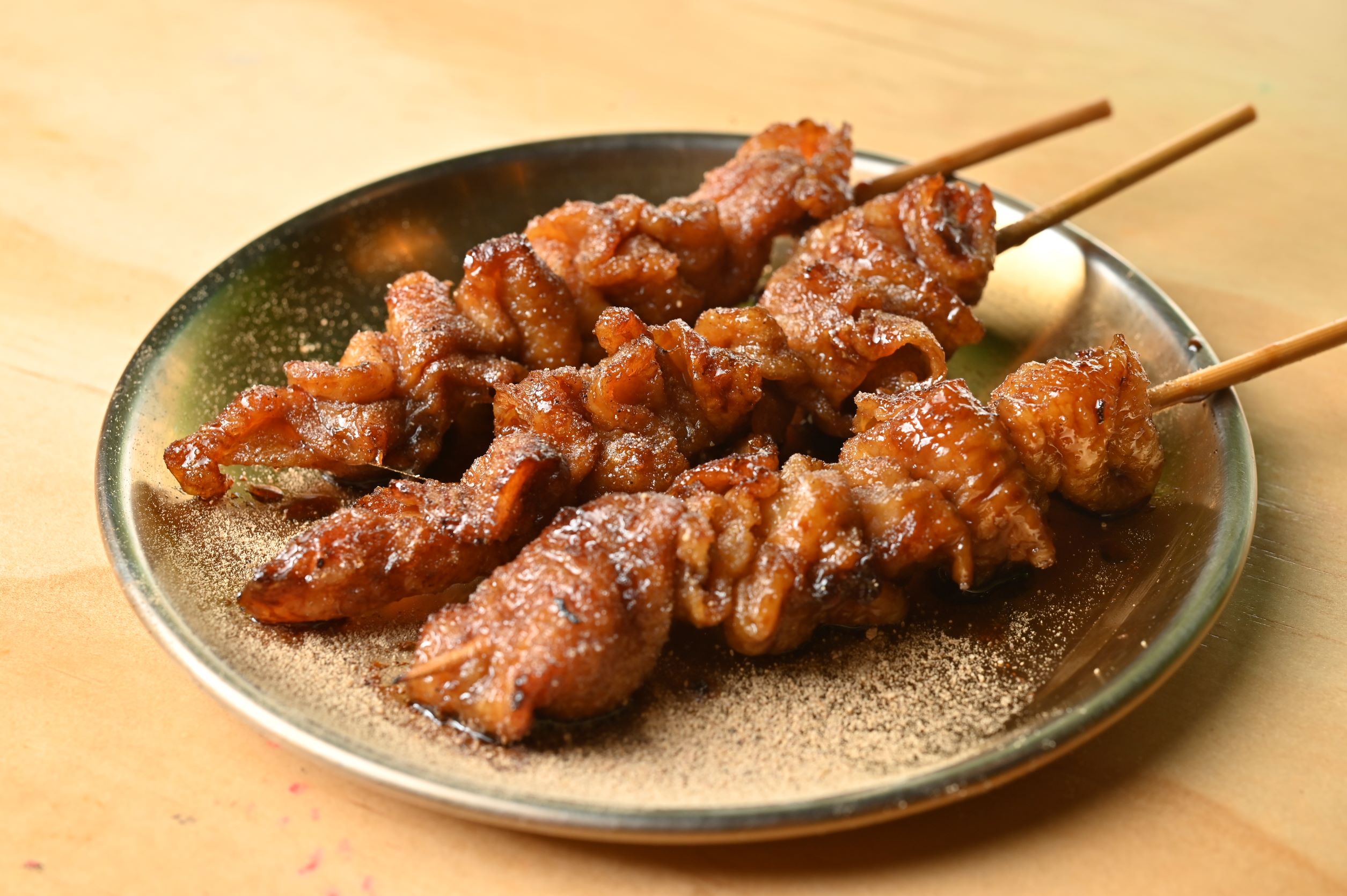 串だけでなく、一品料理にも小ワザが光る。シンプルなポテトサラダを青海苔でドレスアップしたMr.マナオのポテトサラダは、箸休めに人気というのも納得の一品。アツアツの出汁を、サシの美しい和牛にさっと回しかけていただく和風うどんも、なんとも奥深い味わいだ。もっちり食感のちぢれ麺に濃い目のスープがよく絡む味噌ラーメンも、さんざん飲んだあとでもペロリと完食できてしまうほどの完成度をほこる。