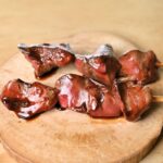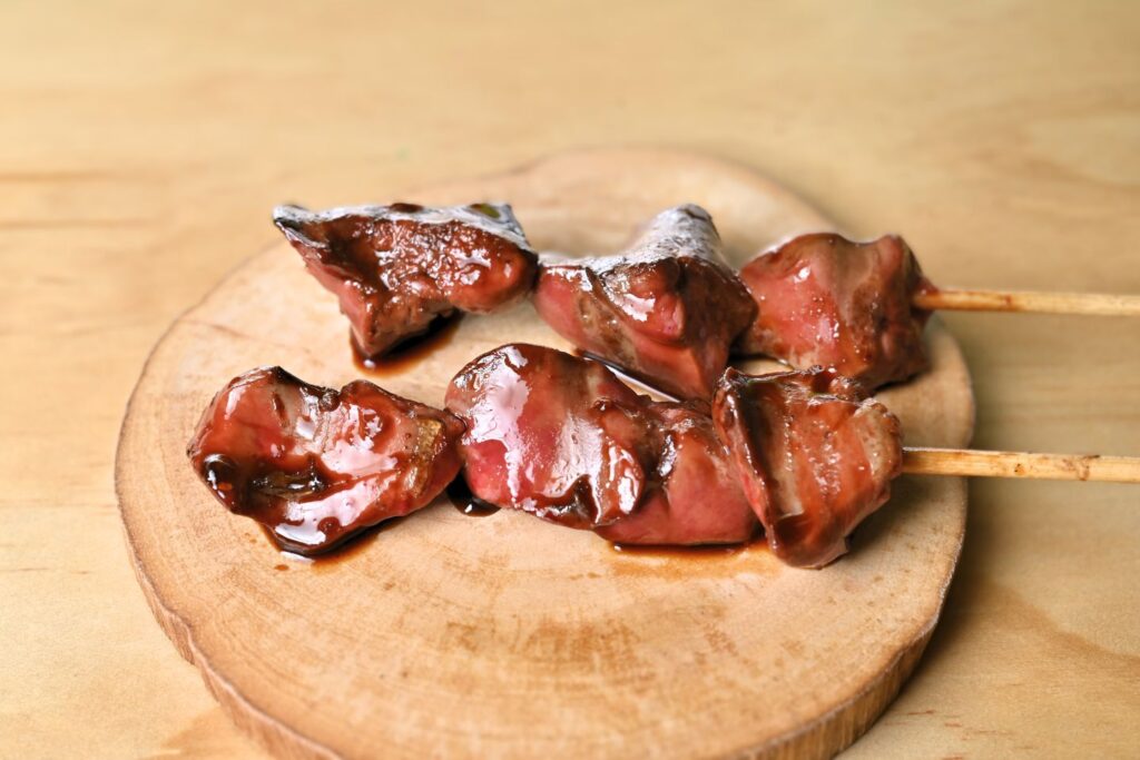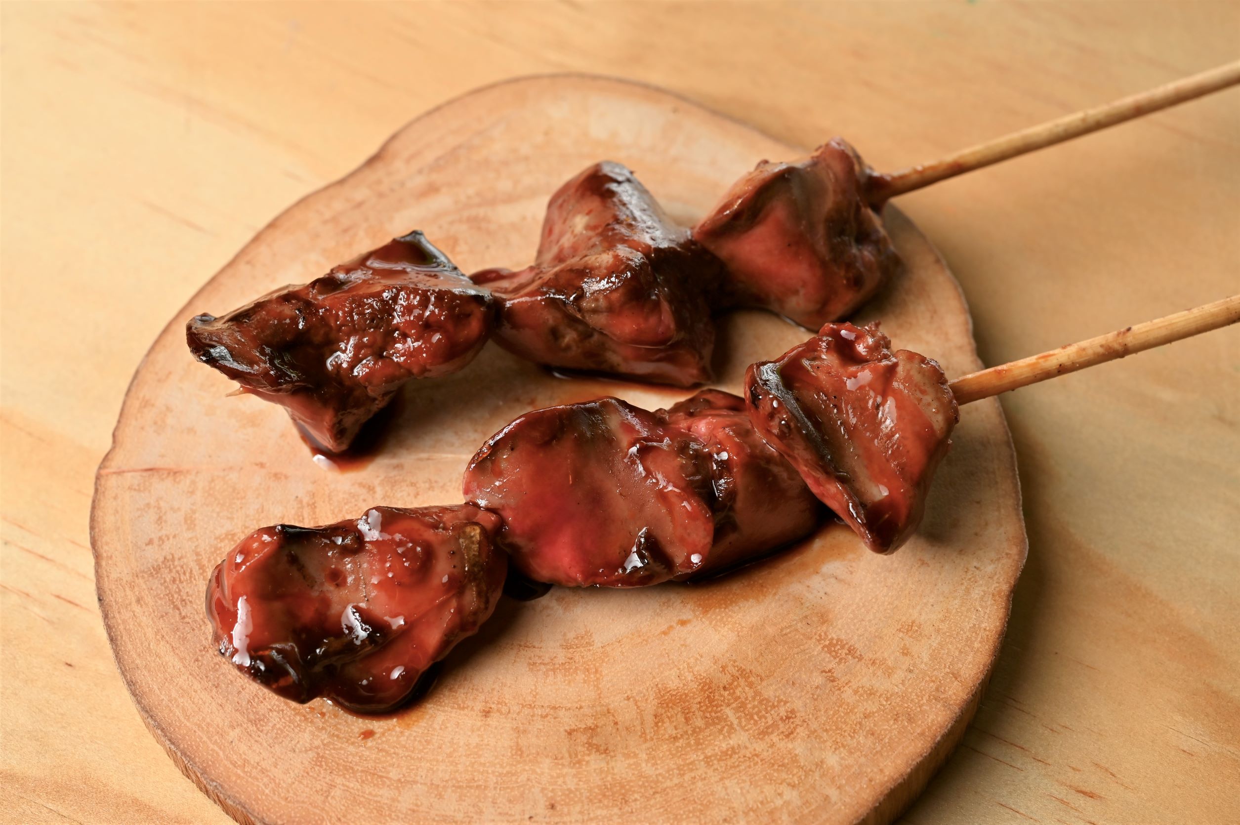 室蘭やきとり(38B)という名前だけど、室蘭で「焼鳥」といえば豚肉と玉ねぎの串のこと。練り辛子をたっぷりつけてどうぞ