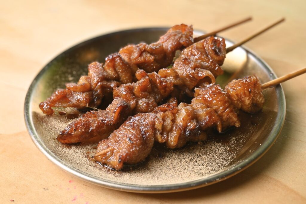 名物のレタス豚巻き串はほどよいシャキシャキ感を残すレタスに豚の脂の旨みがしみわたる一品で、ボリュームもたっぷり。ぎゅっと詰まった万能ねぎや立派な大きさのアスパラも豚バラとの相性抜群、半熟卵やトッポギを巻いたやや変わり串もあれば、アボカドやマンゴー、パインなどもあり、驚きあり歓喜ありのラインナップ。野菜肉巻き串のほか、野菜だけの串、肉の串、海鮮の串など圧倒的品数で迫りくるので、ここは直感に従ってウマそうな品をどんどんオーダーしてみたい。