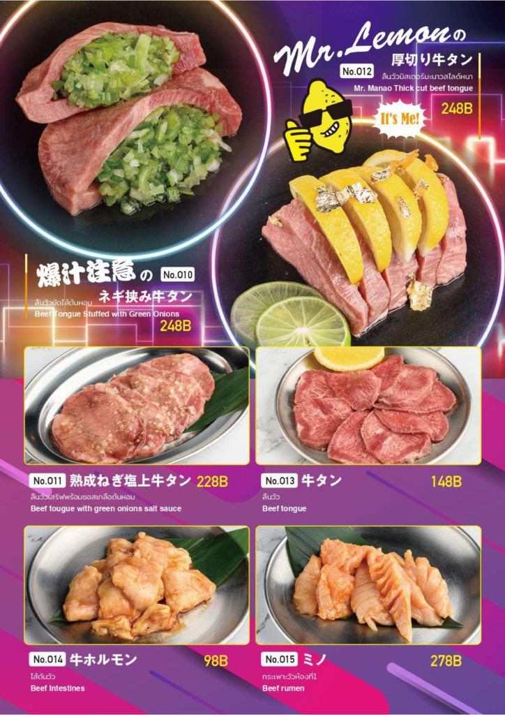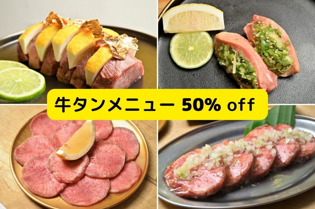 牛タン独特の歯ごたえや香りを堪能するなら、薄切りに仕上げた牛タン(148B)や、まろやかな旨みをたたえた熟成ねぎ塩上タン(228B)もおすすめ。本当にタンは全部半額でいいの?と思うクオリティだ。