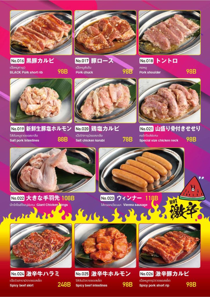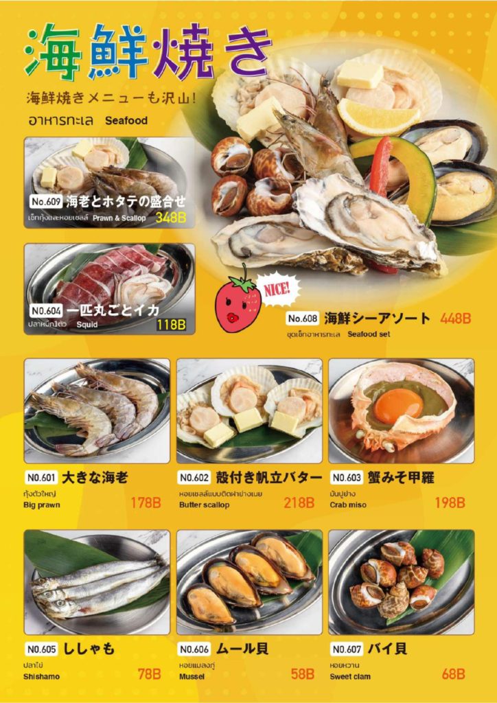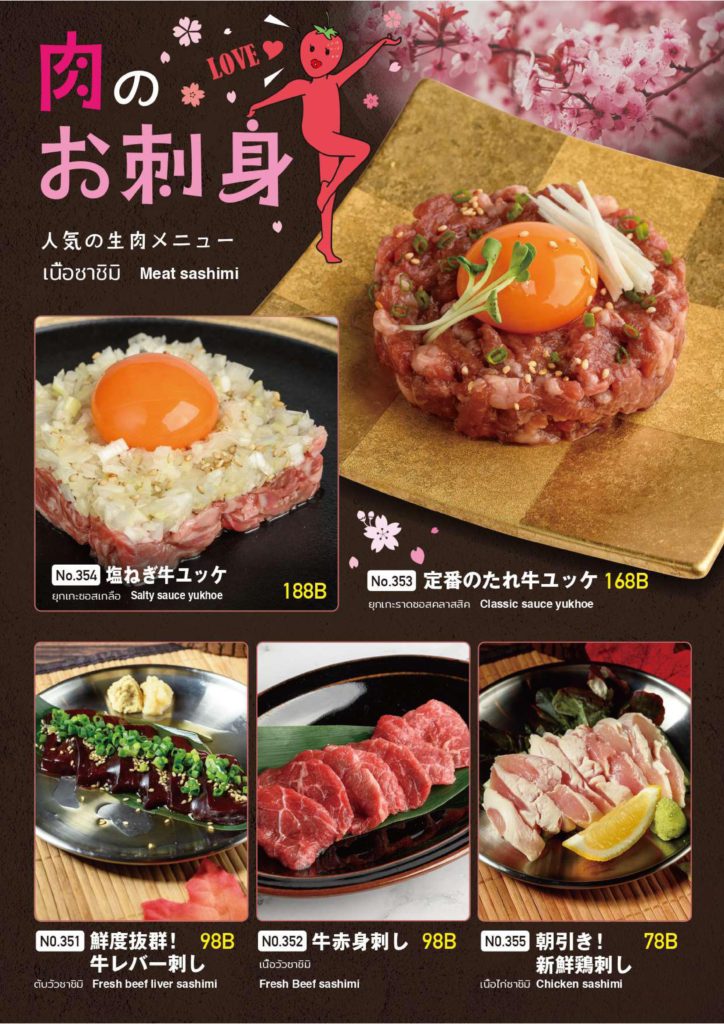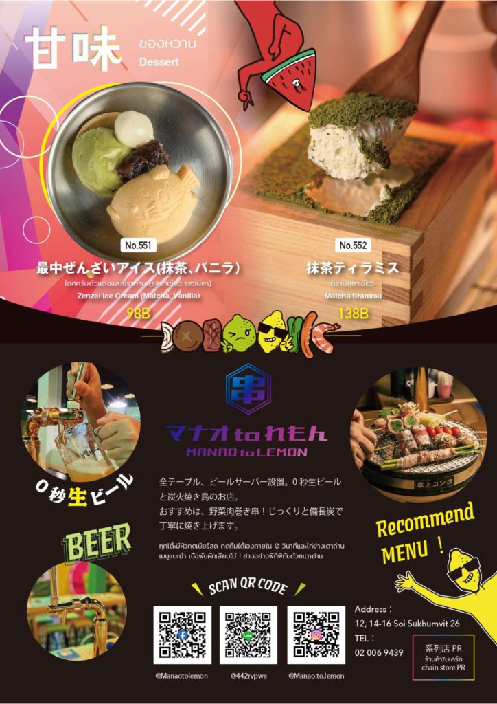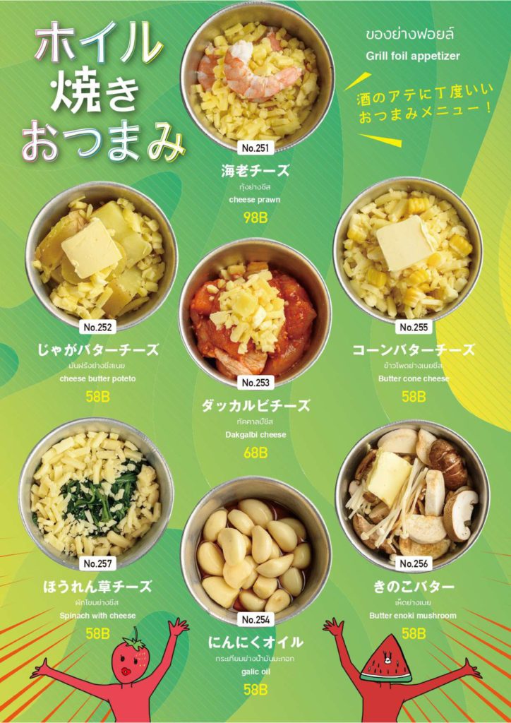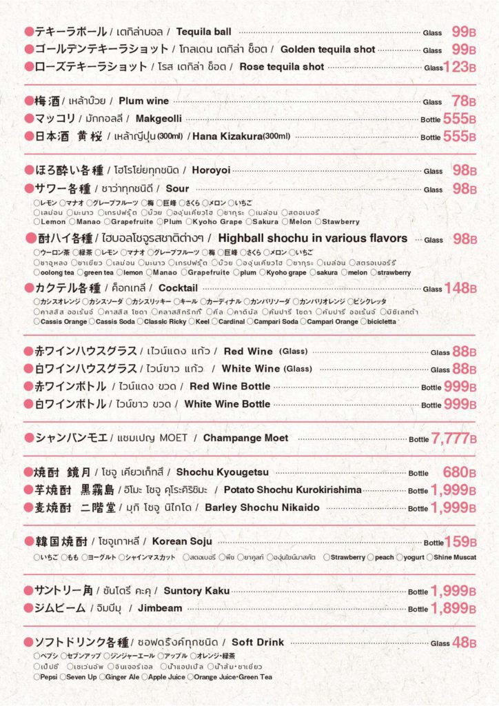 11:00~15:00のランチタイムは近隣のオフィスワーカーで連日賑わう同店の、ランチメニューを見て思わず納得。麺類は100B台前半、定食も丼もの、炭火で焼く焼肉定食ですら200B以下からあり、そのどれもがお値打ちだ。ハッピーアワー(21:00~23:30L.O)は、梅酒、マナオサワー、マンゴーハイボールがそれぞれ1杯39B。生ビール59B。ジムビームのハイボールが44B、角ハイボール55B。赤&白ワイン各49Bと、これまたお得すぎるラインナップ。加えてサービスチャージなしという心意気も実にありがたい。