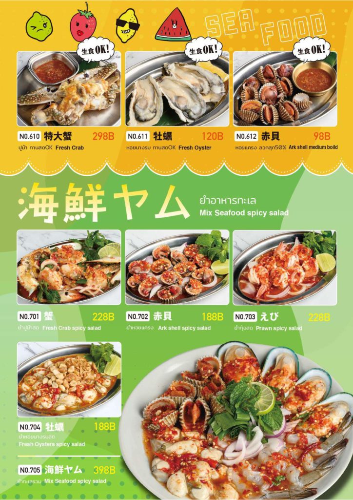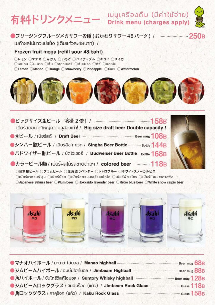 もちろん、食事メインでご来店のお客様には、単品ドリンクメニュー(生ビール88バーツ)もお値打ち価格。