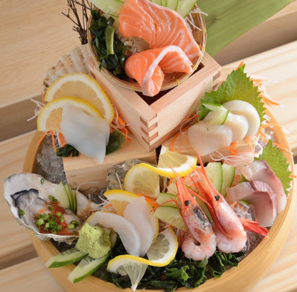 鮮度抜群・産地直送の刺身桶盛り(5種・7種・10種)がオススメ!入店から1時間(テラス無制限)のハッピーアワーはなんとアルコール類が50バーツ~。無料のサラダバーも種類豊富で人気が高い。ここバンコクで日本の旨味・雰囲気を存分に味わえる一軒です。