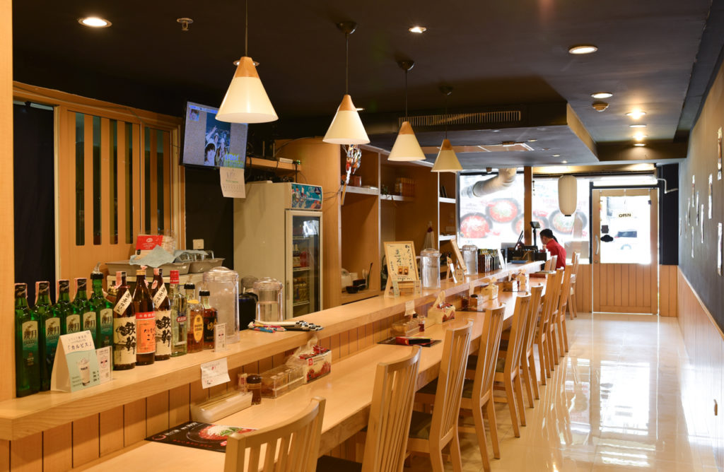フジスーパー2号店の目の前に位置し、買い物前後にも気軽に立ち寄りやすい。店内は明るく清潔で、大きなカウンターを中心にテーブル席も完備。飲みたい人には、麻婆豆腐などの小皿をつまみに居酒屋のように使えるのも懐が深い。〆にはもちろん、こだわりと誇りがつまった担々麺をどうぞ。