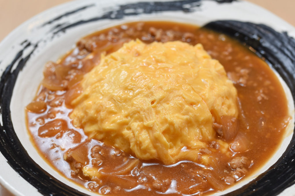 人気のオムライスは大きめの鶏肉にケチャップで仕上げたチキンライスにふわとろ卵が嬉しい。子どもにも食べやすく、人気の一品。
