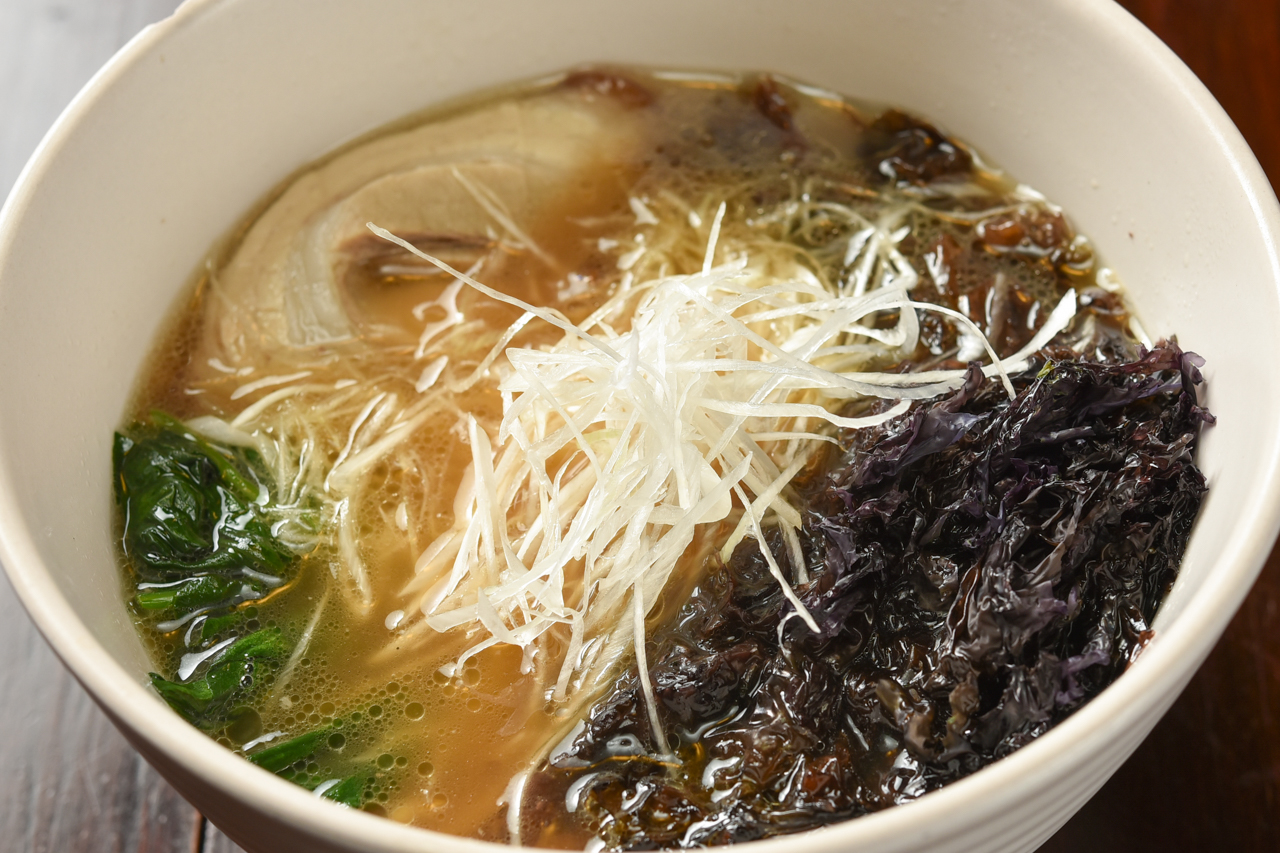鶏と野菜の旨味がたっぷり溶け出したスープで頂く塩ラーメンは格別な味わい。