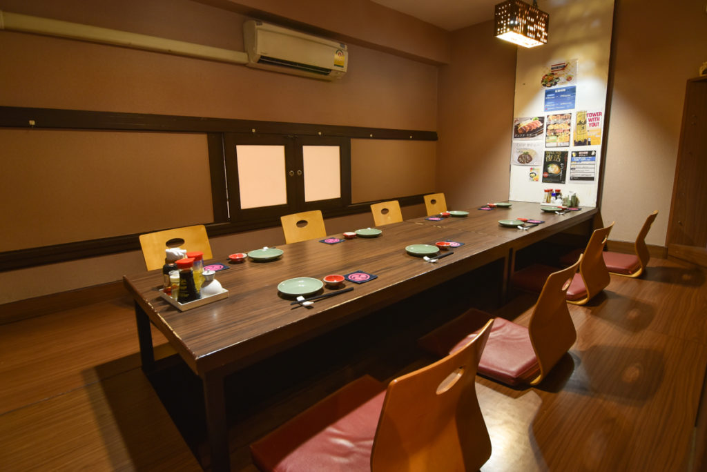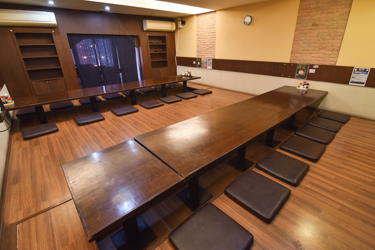 最大30名まで対応する大部屋の他、大小10の個室を完備。
