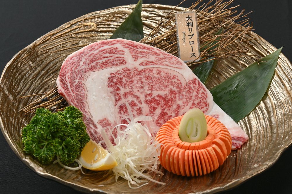 名物の黒毛和牛リブロース(890B)。一枚どん!と180gが横たわる圧倒的存在感