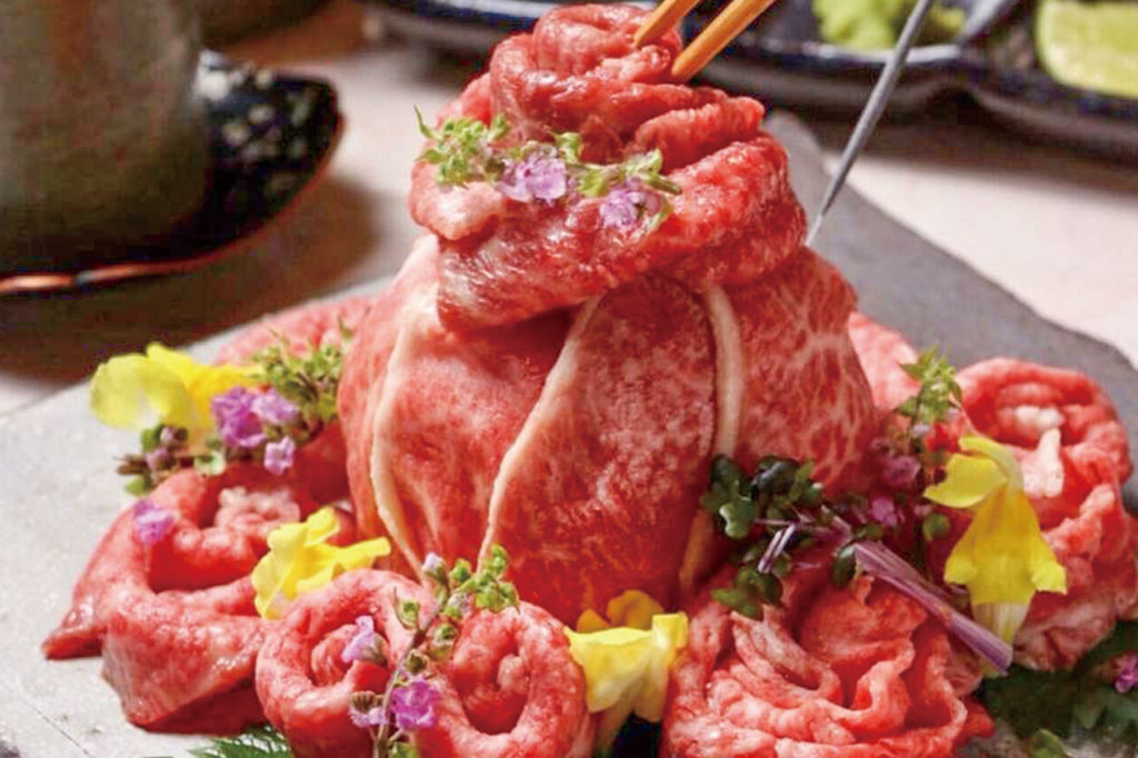 プロの目が厳選する和牛をはじめ、日本直送の旬の魚や野菜をハイセンスな一皿に変え、驚きの価格で提供する「肉亭あらた」。何を食べても文句なしに美味いが、やはりこの店の真骨頂は肉を味わう料理だろう。