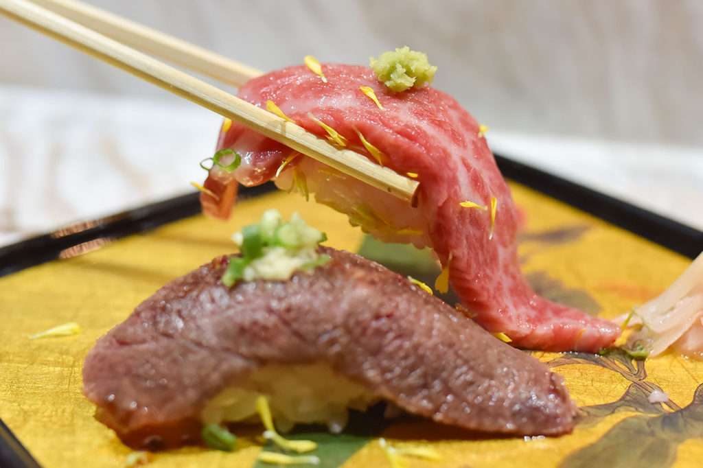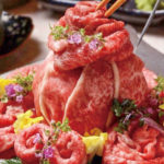 使用するのはA5ランクの黒毛和牛のみ。熟成具合や鮮度管理にも徹底配慮し、もっとも食べごろの状態を見極めて調理する。巷の肉好きから関心を集めているのは、同店自慢の肉亭ユッケ。口に入れればシルクのような舌ざわりと共に、上質な肉だけが持つ旨みと甘みがしっかり感じられる。さらなる美食の世界にいざなう黄金ユッケ(680B)もぜひお試しを。和牛、ウニ、トリュフ、キャビアの豪華食材が競演するこの感動は、生肉の希少な風味を楽しめる海外ならではだ。