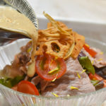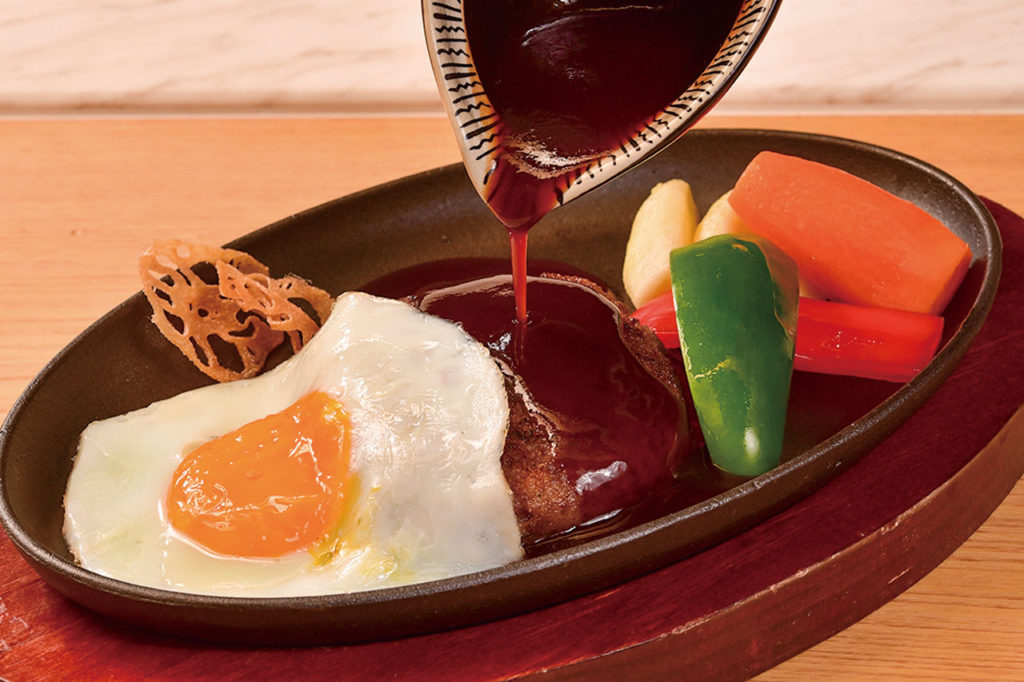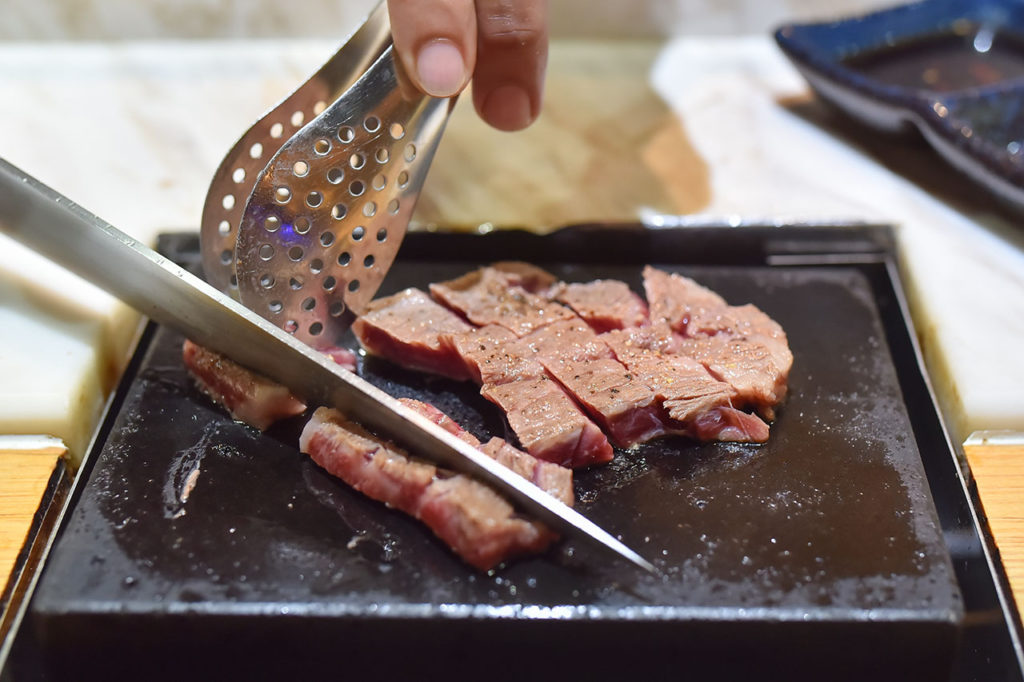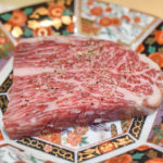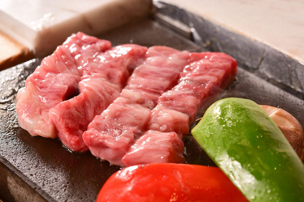 富士山の溶岩プレートを用いて肉を焼く溶岩焼きコース(1,580B~)もいい。溶岩の遠赤外線効果で食感はふわっとジューシー。適度に余分な脂も吸い取ってくれる溶岩は、肉の旨み、深みをより一層引き立ててくれる。