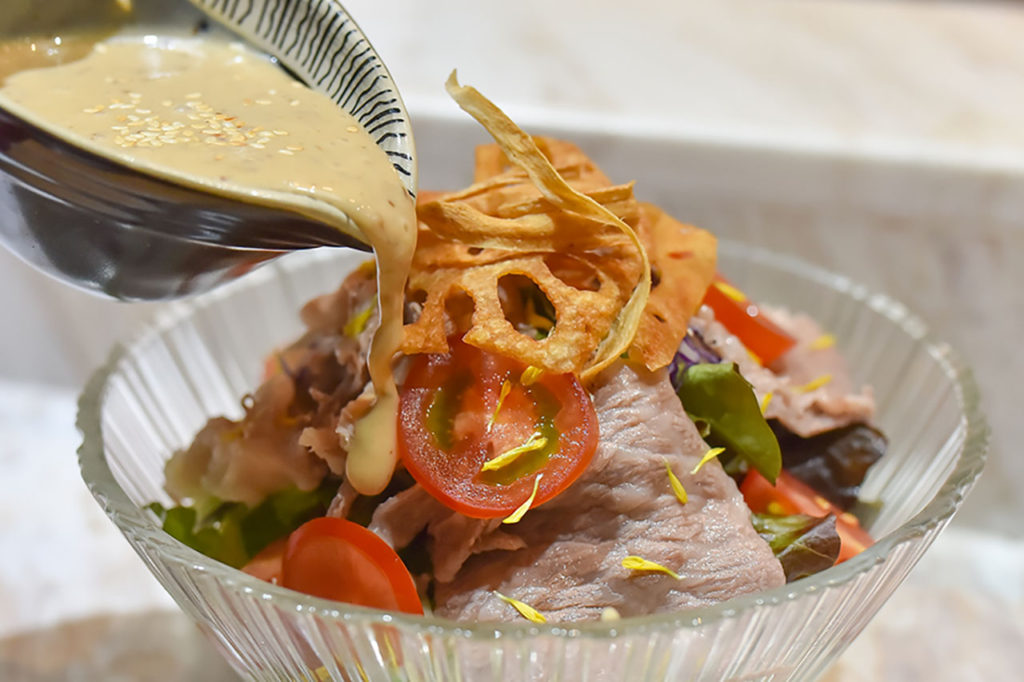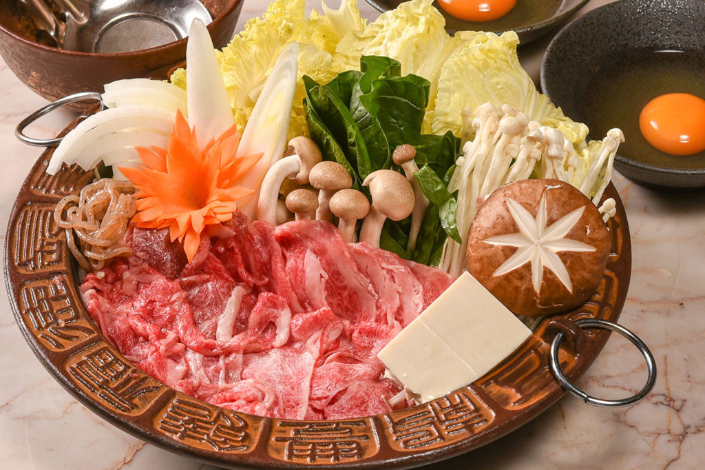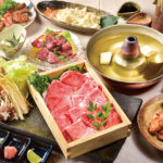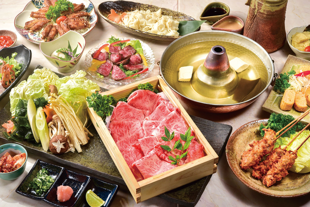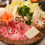 魅力のすべてを味わいつくすなら、肉をメインに山海の味覚が凝縮された、宴会コースがおすすめ。人気の自家製ごま豆腐や前菜盛合わせ、肉寿司、旬の刺身、季節の日本野菜を使った一品など総勢10品以上で、味・ボリュームともに満足度も高い。極上和牛を新鮮な野菜とともに味わうしゃぶしゃぶコース、すき焼きコースは、それぞれ1,580B~。この価格でふんだんに和牛が堪能できる喜びと感動を与えてくれる。いずれもコースの〆に麺の種類が選べるが、肉と野菜の旨みたっぷりの極上スープで仕立てるきしめんが、文句なしに最高だ。