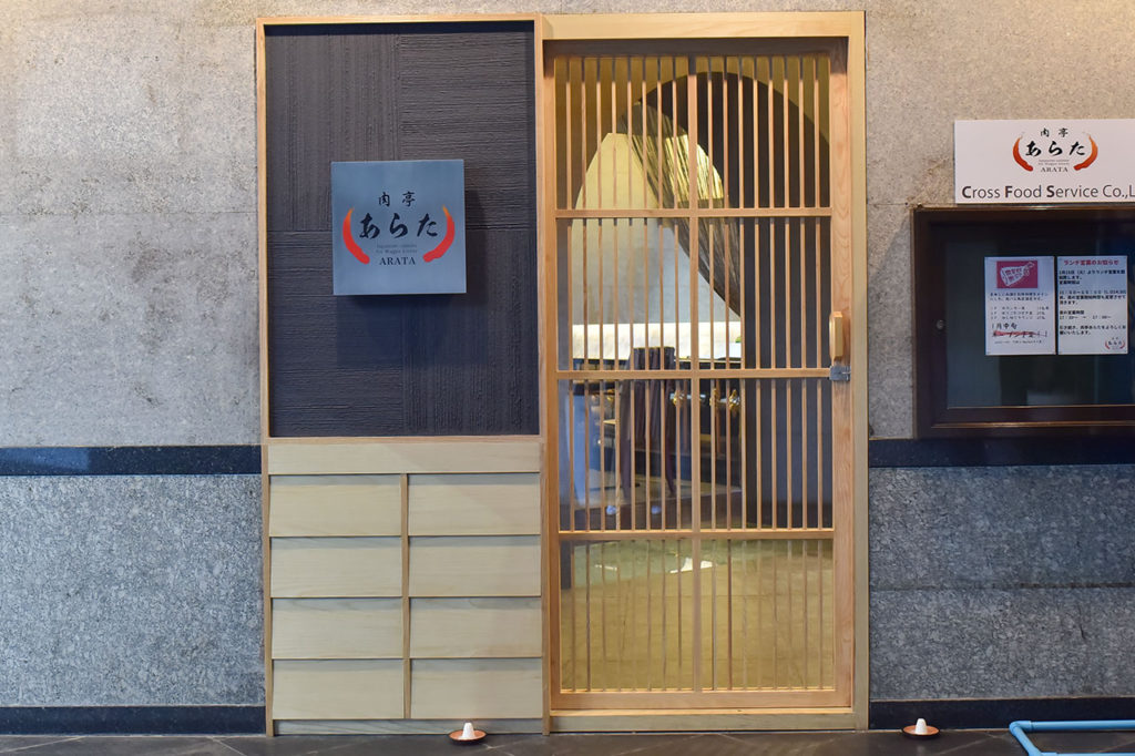 しっとり落ち着いた大人の雰囲気の「肉亭あらた」。肉、魚、酒、全てに満足のいく一軒だ。