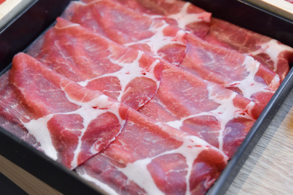 肉類はオーダーが入ってからカットするためおいしさが違う。厚すぎず薄すぎず、しゃぶしゃぶに最適な厚さも絶妙。