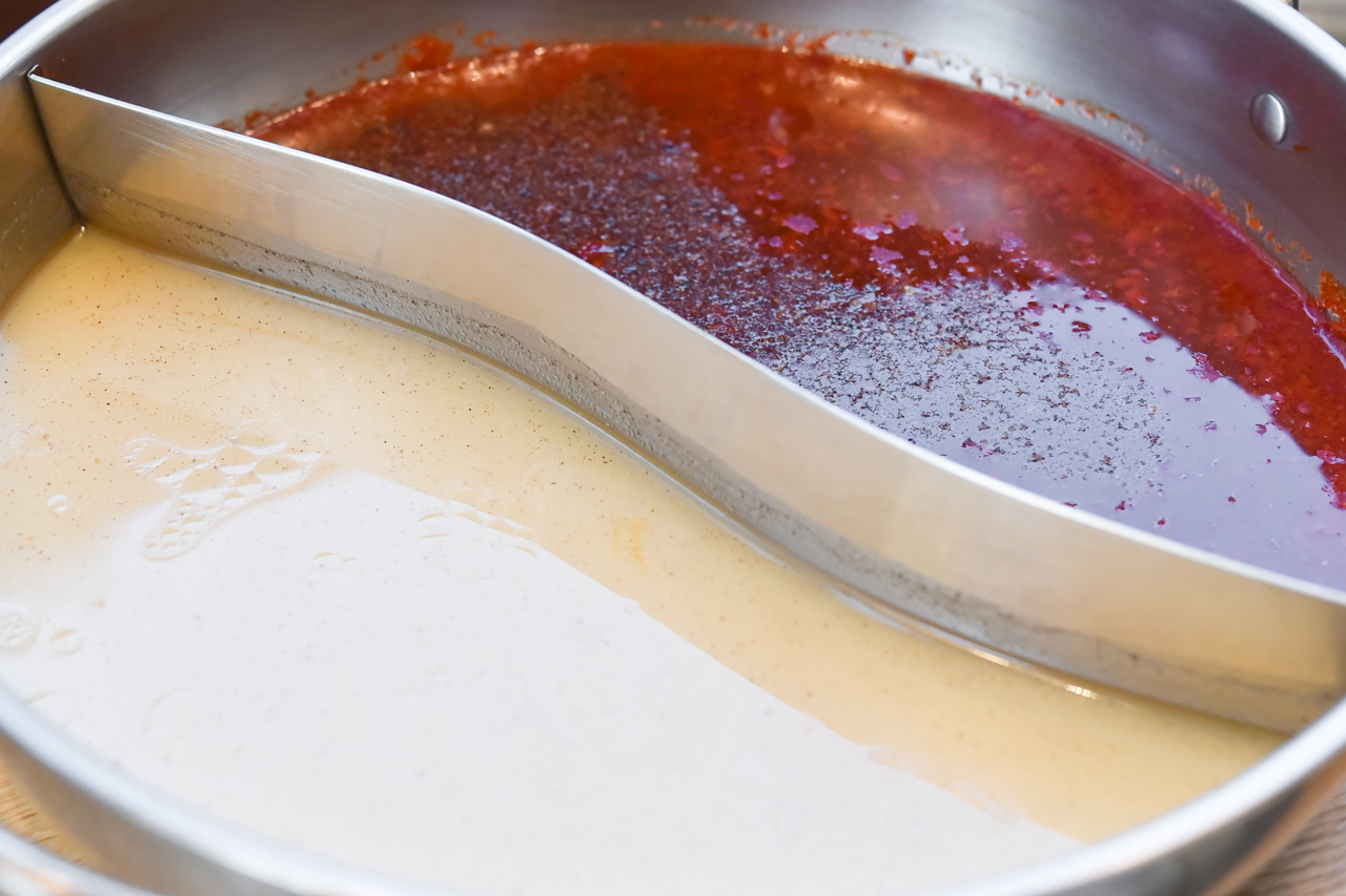8種類のオリジナルのだしの中から、好きなだしを2種類選び、1つの鍋で2つの味が楽しめるのも魅力。