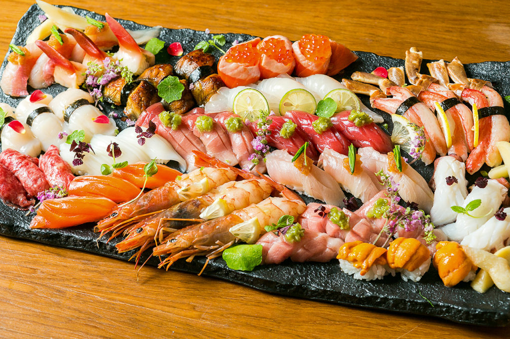 北海道産のウニ・イクラや愛媛県産の真鯛、長野県産のアルプスサーモン、長崎県産の本マグロといった海鮮メニューが味わえると好評だ。赤酢と白酢の2種のシャリを用意し、ネタに合わせて使い分けるこだわりも見逃せない。