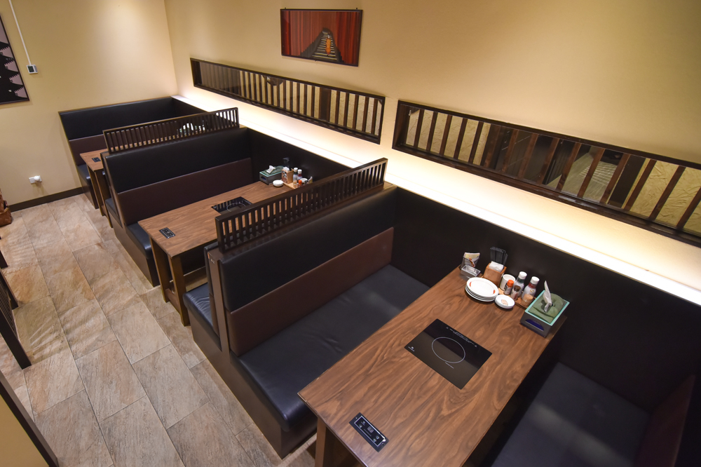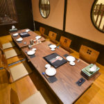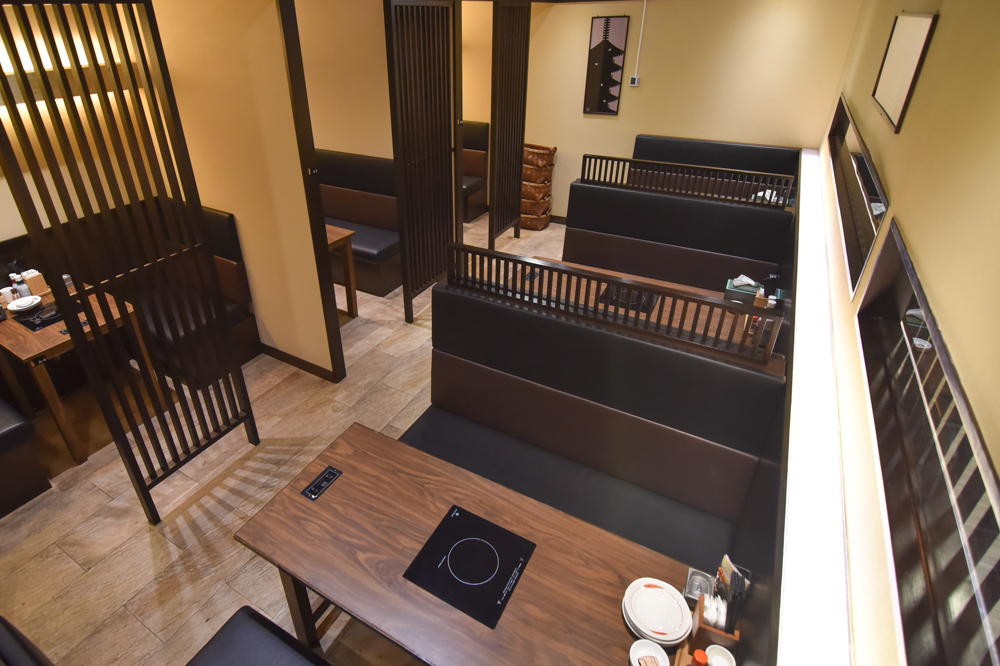 落ち着いた店内にはテーブル席、カウンター席、掘ごたつ席を完備