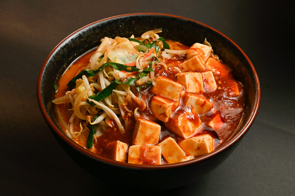 辛ウマ麻婆豆腐がたっぷり。麺は太麺か細麺を選べ、辛さレベルも5段階から指定できる