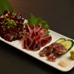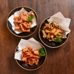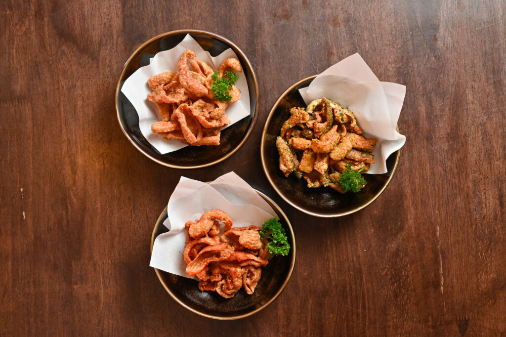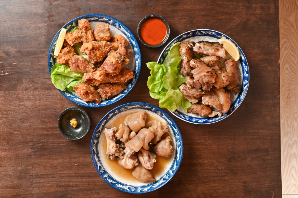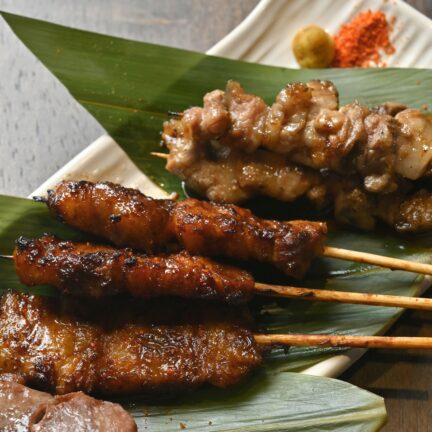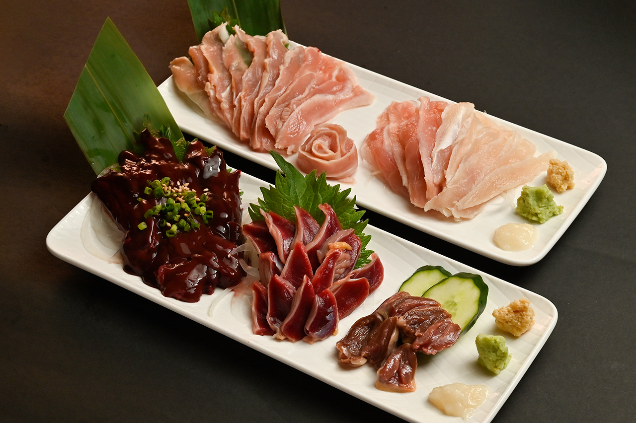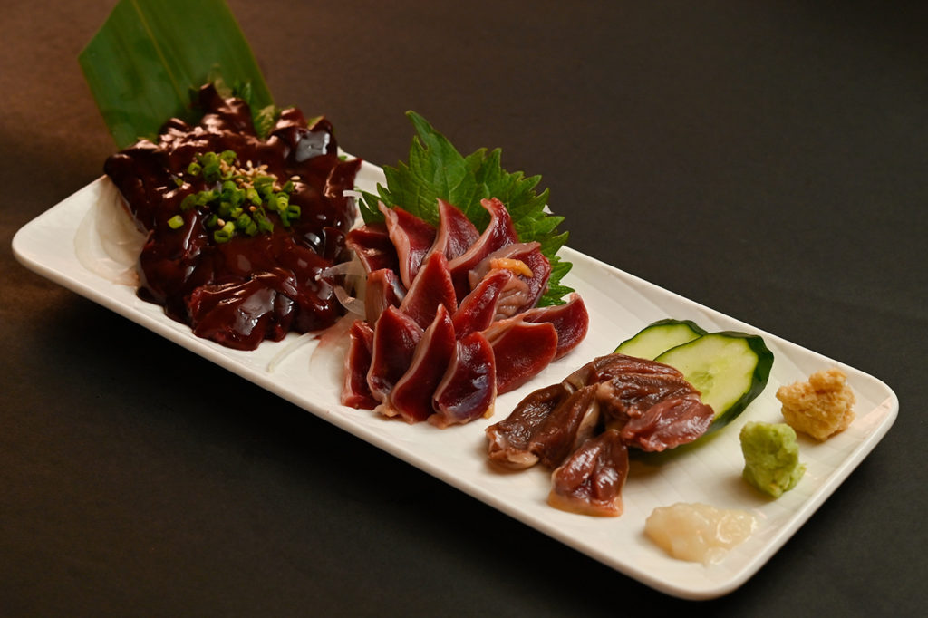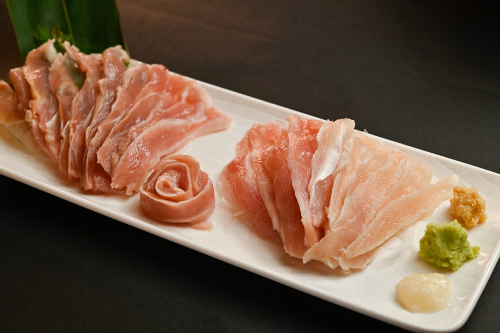 酒に合う一皿もこれまた59B~と良コスパで揃っているが、中でもちょっと目を惹くのが、見るからに新鮮な「地鶏軍鶏の鶏刺し」(99B)と「地鶏軍鶏ホルモン刺3種盛り」(339B)。グラス片手に地鶏をがぶりとほおばれば、あふれ出す滋味に頬もふっとゆるむはず。