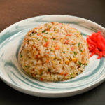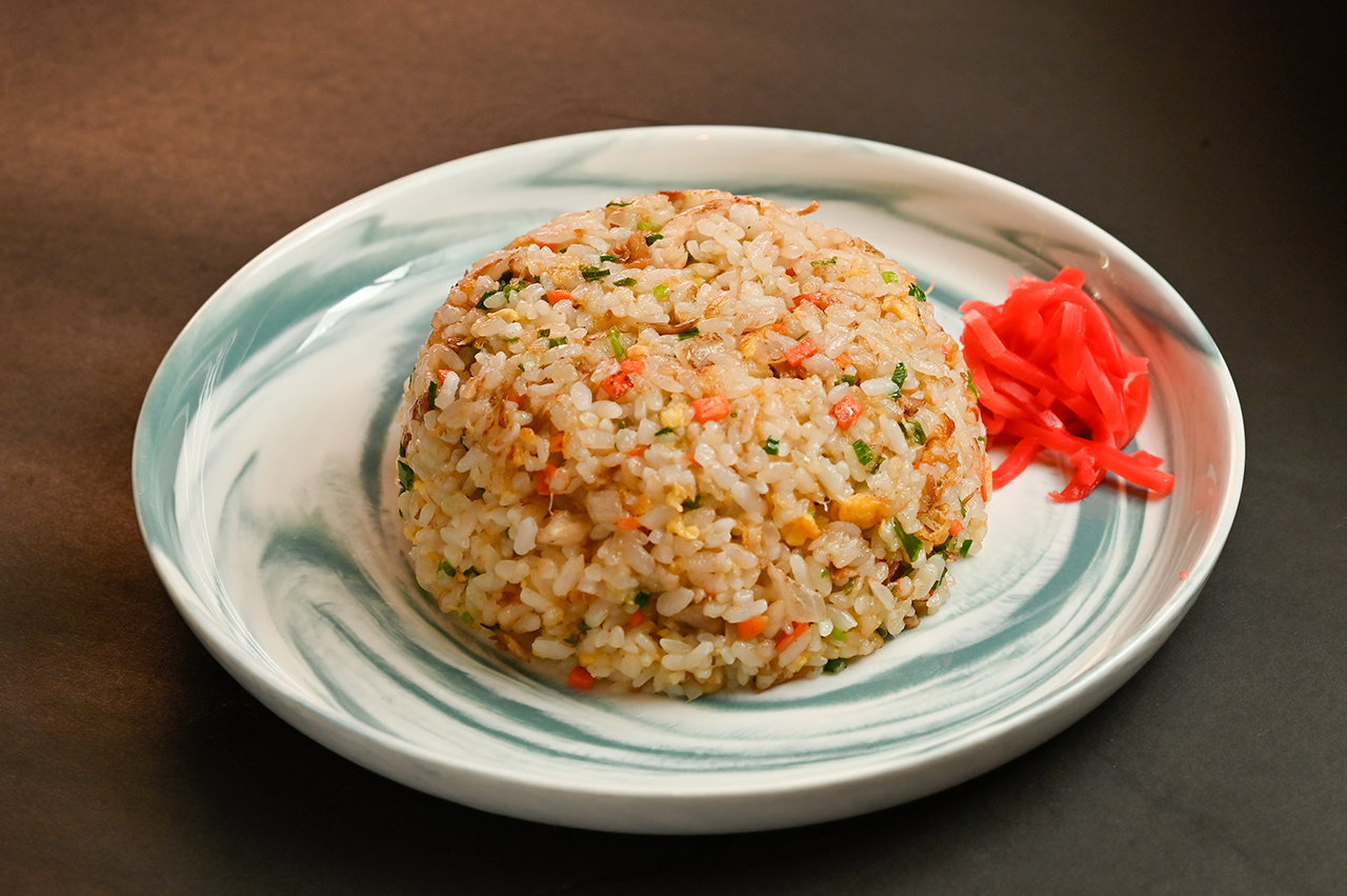 これぞ王道!と呼ぶにふさわしい「なつかしの中華そば」(159B)、こちらも忘れずご注文を。美しく澄んだスープに、シンプルを極めたトッピング。丼の端にちょこんと佇むなるとにいっそう郷愁を誘われる。「チャーハン」(139B)と合わせれば、昔ながらの町中華に迷い込んだよう。