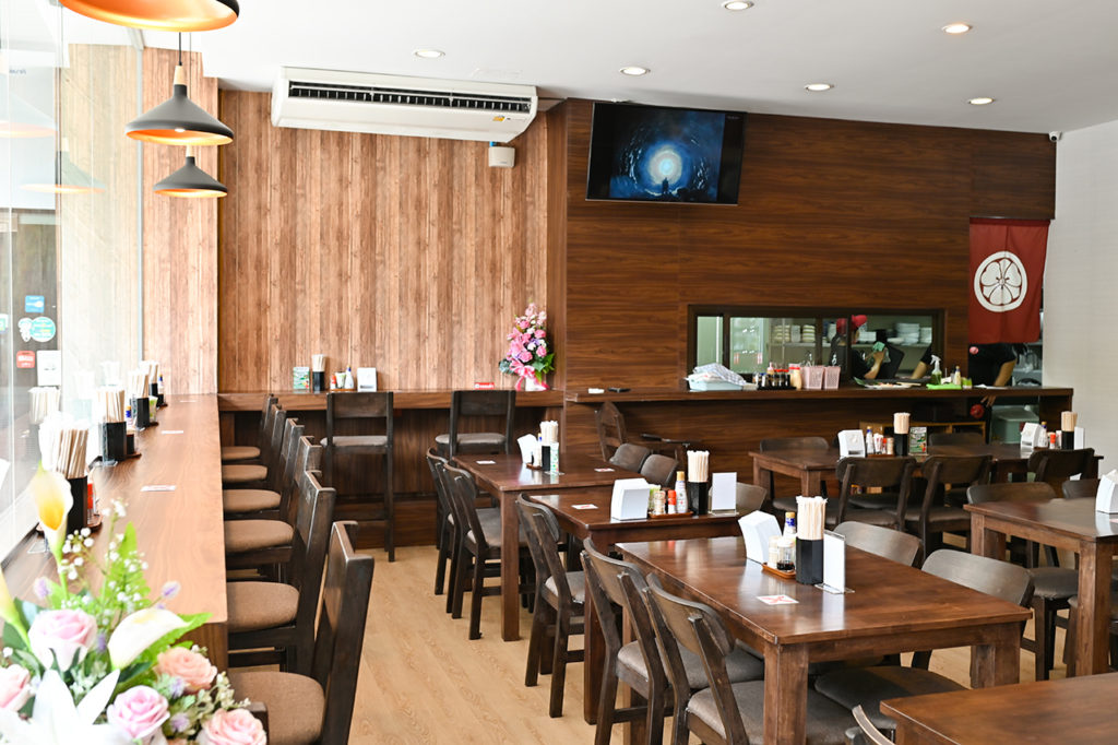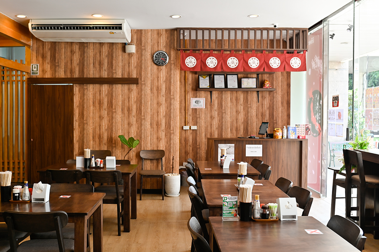 プラカノン駅1分の超好立地、でありながら広々と落ち着いた店内はまさに穴場。まず圧倒されるのは、メニューブックにひしめくラーメンの面々だ。味噌バターコーン、超濃厚鶏白湯、魚介つけ麺、川崎担々麺、名古屋式台湾まぜそば、広島つけ麺、超濃厚とんこつ……と、郷土色豊かなご当地ラーメン、その数ざっと50種以上。長年の調理経験と研究を重ねたオーナーによる本気の一杯がズラリと並ぶ様子は、ちょっとしたラーメン博物館? それでもまだ日々アップデートに余念がなく、今後もメニューが増えるというから驚くばかり。