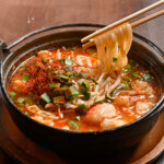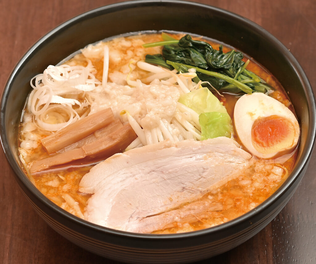 辛さの向こう側の旨みにことん溺れるならこの一杯、激辛フリークも納得の「激辛蒙麺」(289B)で決まりだ。パンチの効いた二郎系と蒙古タンメンを掛け合わせたいいとこ取りだけに、その中毒性は折り紙付き。汗をかきかき、ひと口、もうひと口と食べ進めたくなること間違いなし。