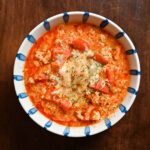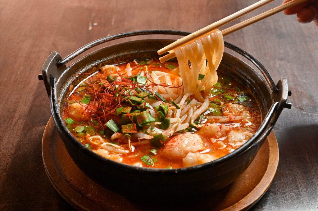ピリ辛ホルモンの食感がたまらない。野菜も負けじとふんだんに入って意外にヘルシー